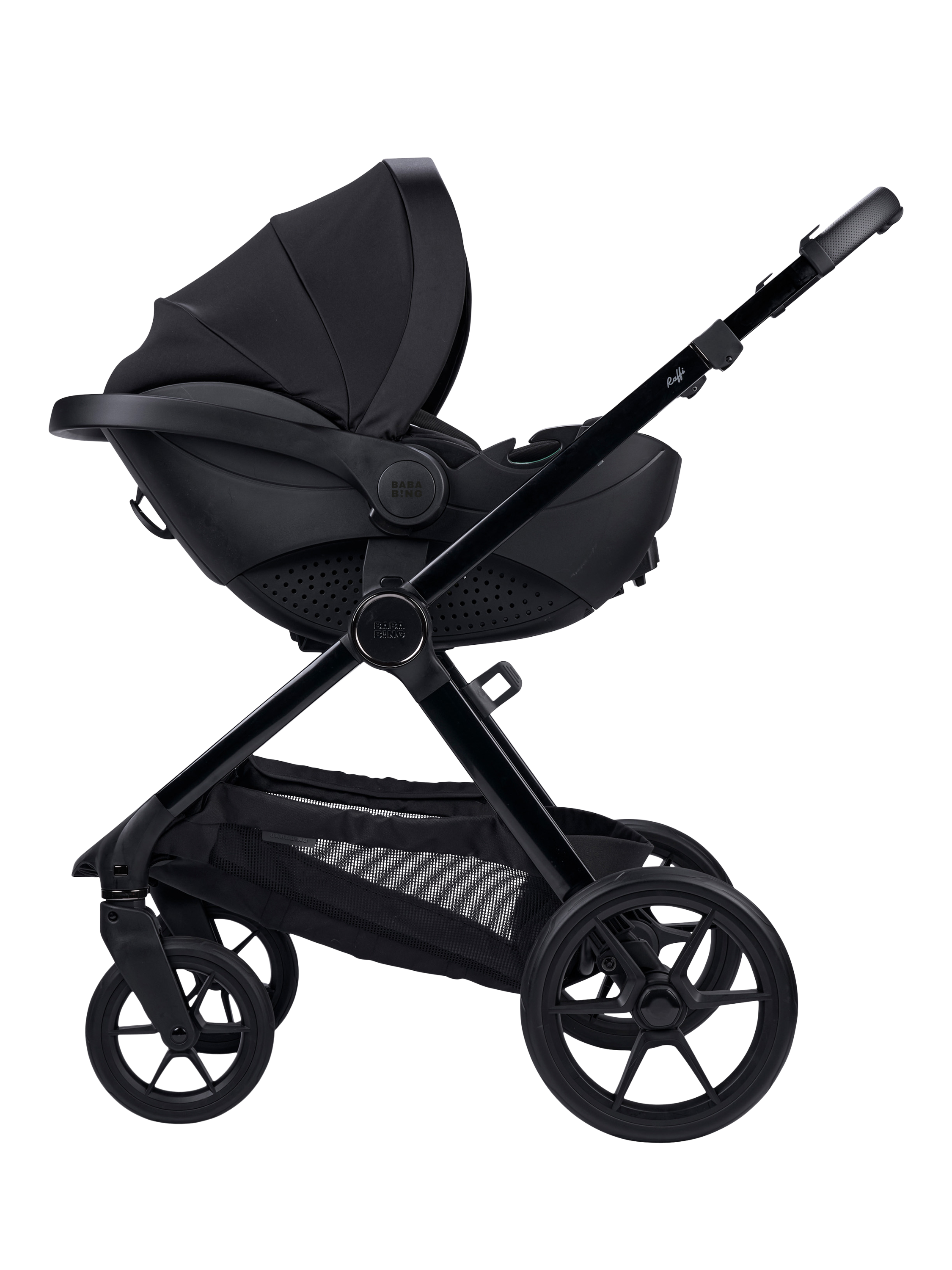 BabaBing!Raffi 2.0 Pushchair & Accessories with i-Size Hera Verto Spin Car Seat & ISOfix Car Seat Base Bundle, 16 Piece, Black