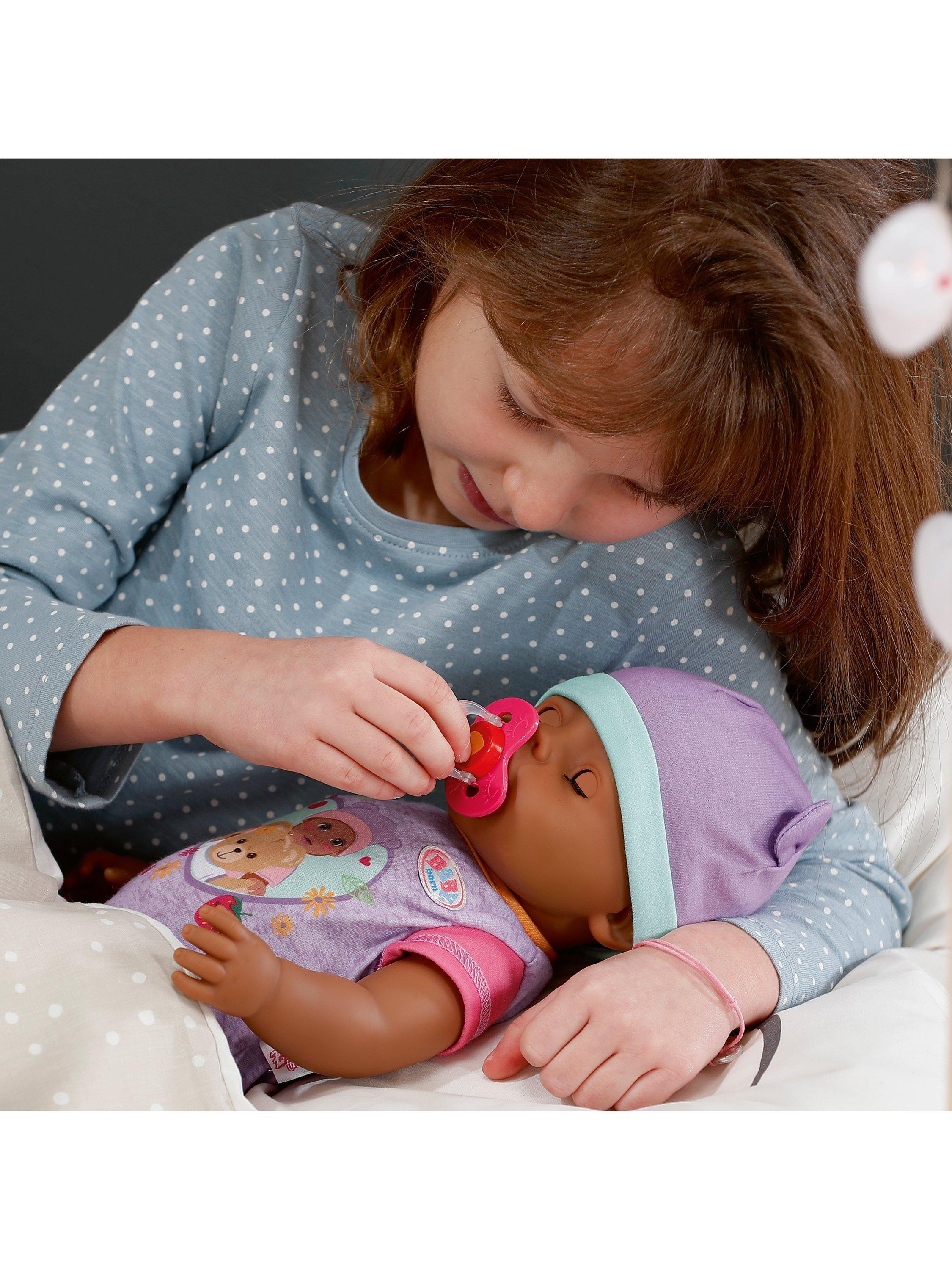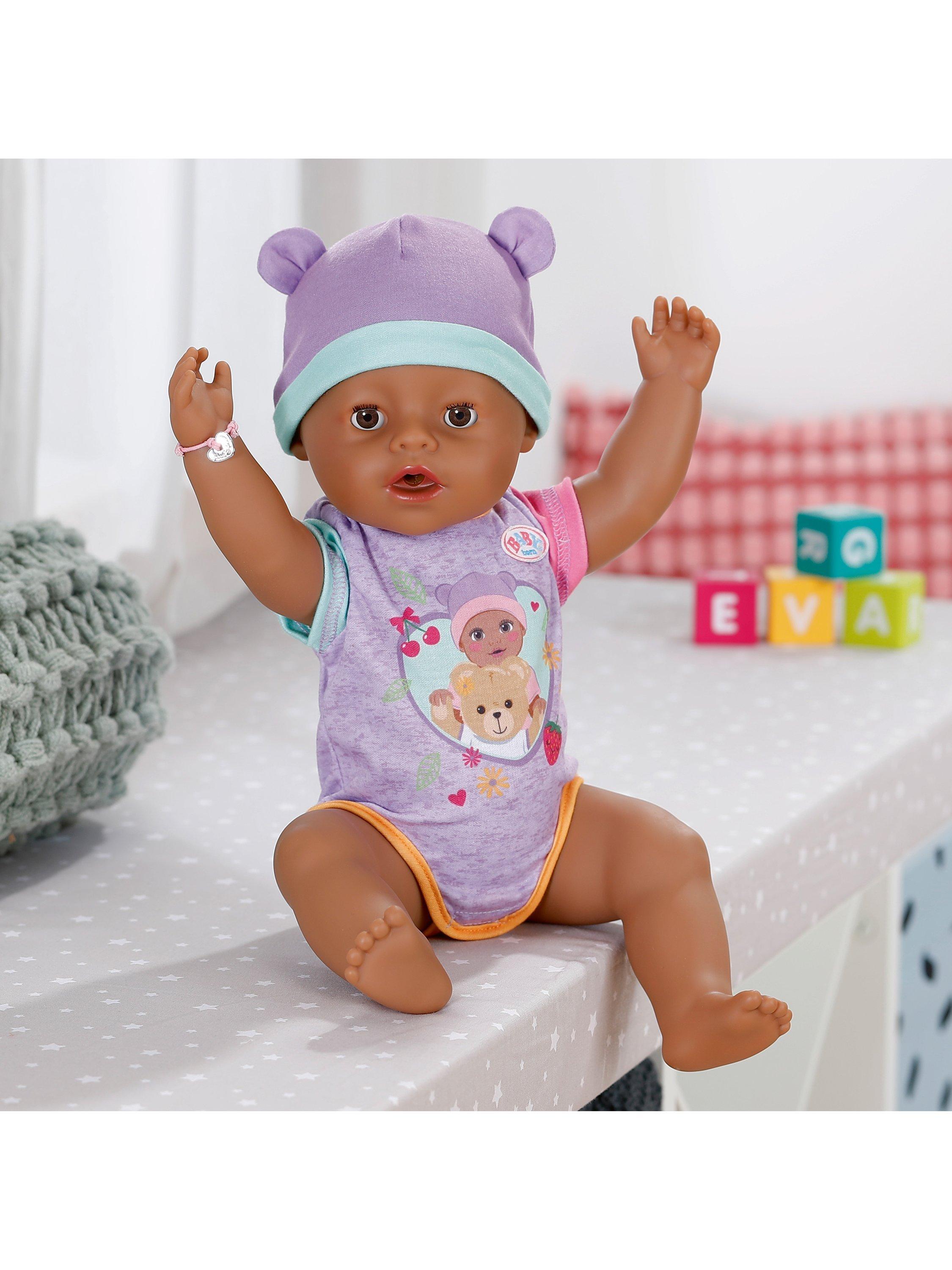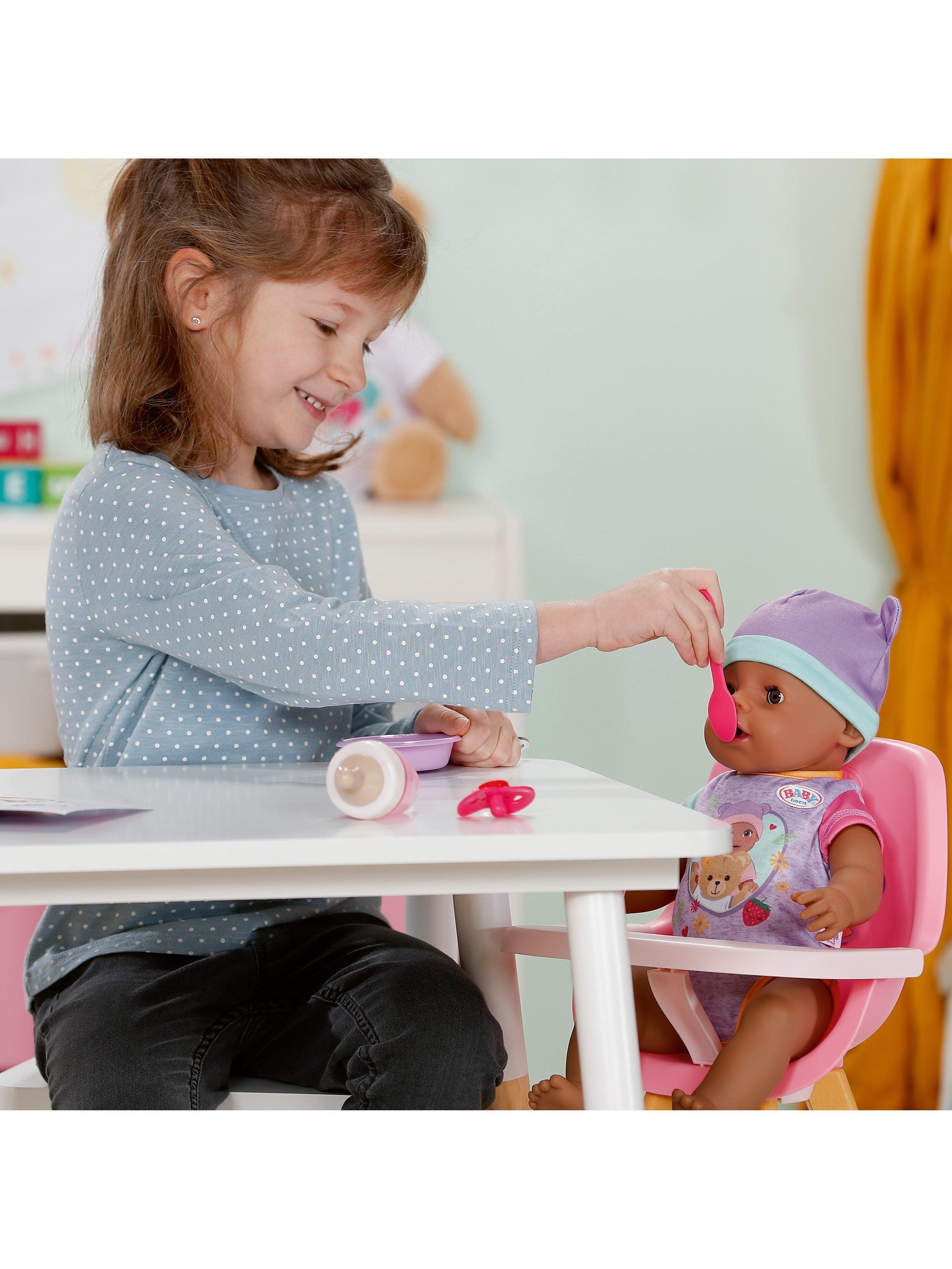 Eva is available in her adorable new outfit and comes with 10 accessories for opening up a world of realistic, nurturing play. Each accessory is made with fun attention to detail, including the new Magic Plate – just use water to reveal a delicious meal for your BABY born or pop her on the potty after enjoying her meal and press her tummy to see her go to the toilet just like a big girl, the water will even reveal a poop in her potty!