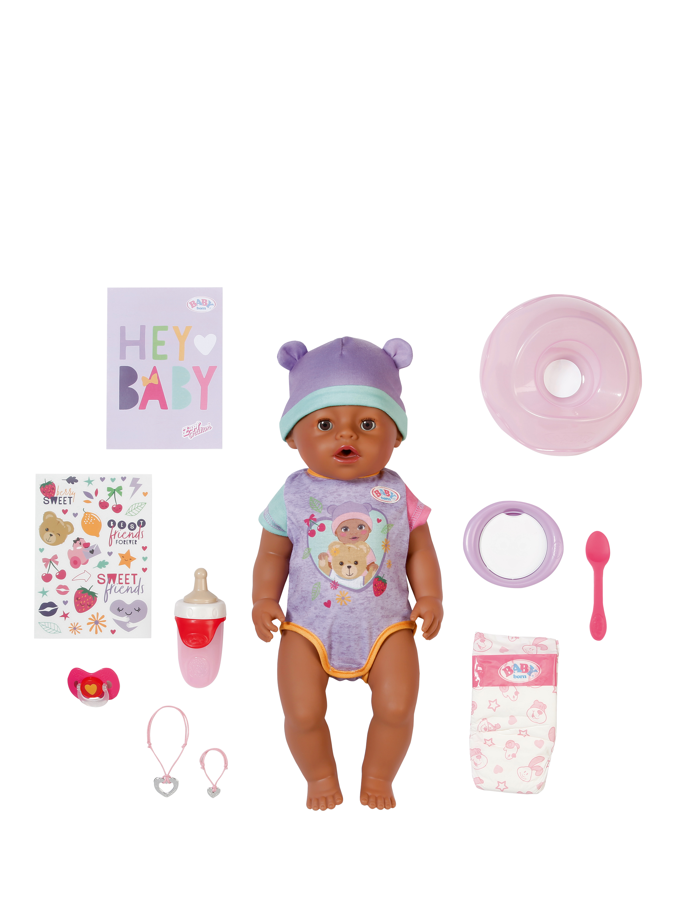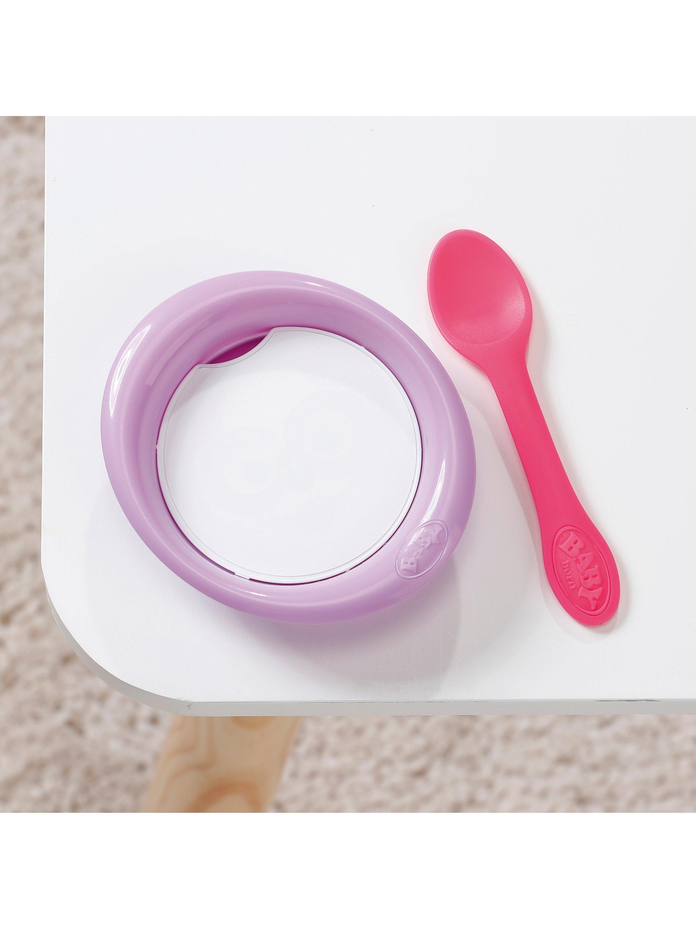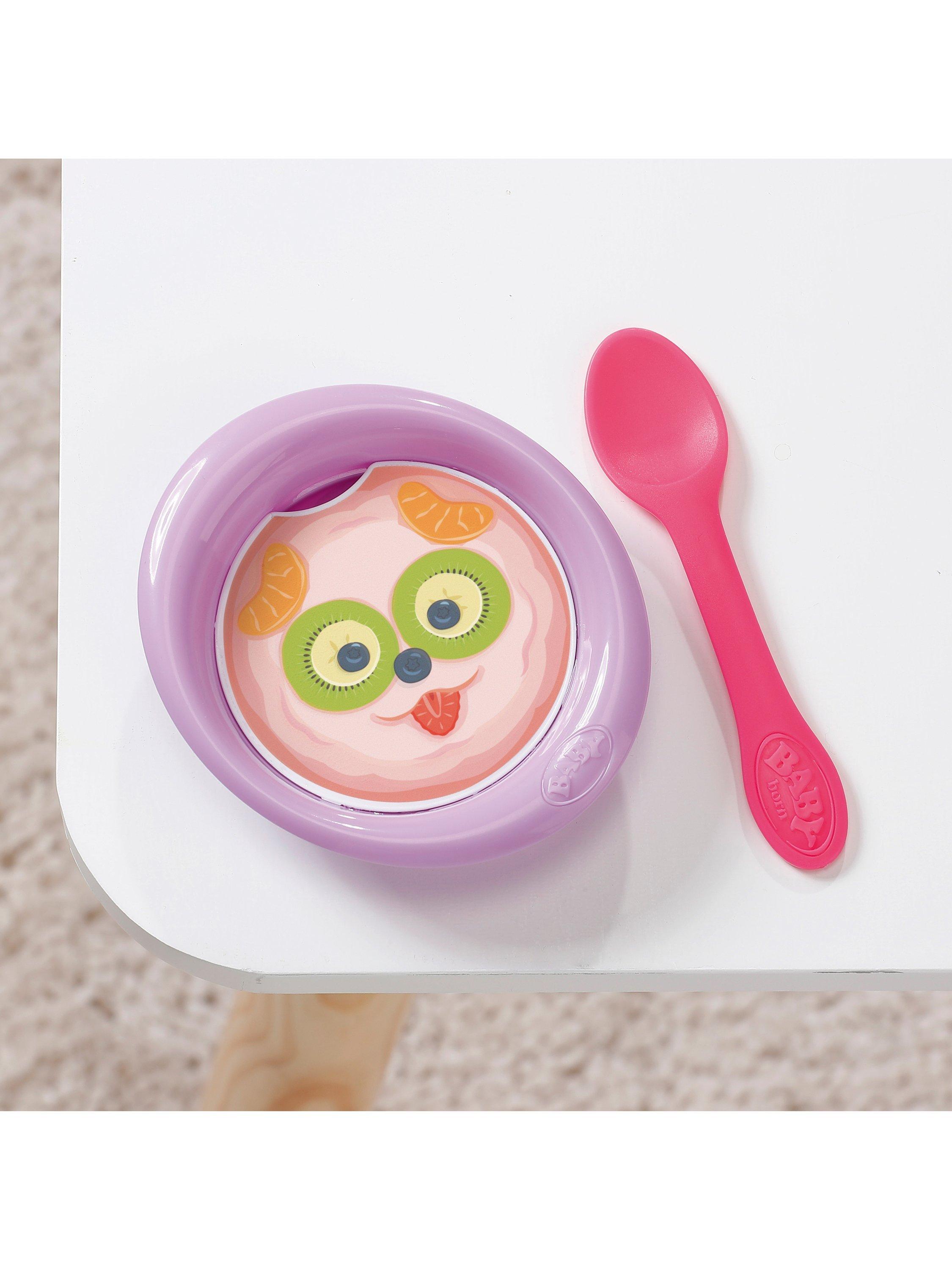 Eva is available in her adorable new outfit and comes with 10 accessories for opening up a world of realistic, nurturing play. Each accessory is made with fun attention to detail, including the new Magic Plate – just use water to reveal a delicious meal for your BABY born or pop her on the potty after enjoying her meal and press her tummy to see her go to the toilet just like a big girl, the water will even reveal a poop in her potty!