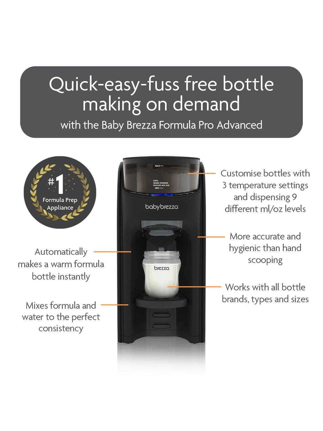 The Formula Pro Advanced makes your baby’s bottle with no messy measuring, no mixing, and no waiting for the water to be the correct temperature. Simply set the machine up then all it needs is a press of a button to make the bottle. You can customise the perfect bottle for your baby by choosing an amount of formula from 2-10oz in 1oz increments. Then there is a choice of 3 temperature settings (or water dispensing only). It works with virtually all brands of formula and all bottle brands and sizes.