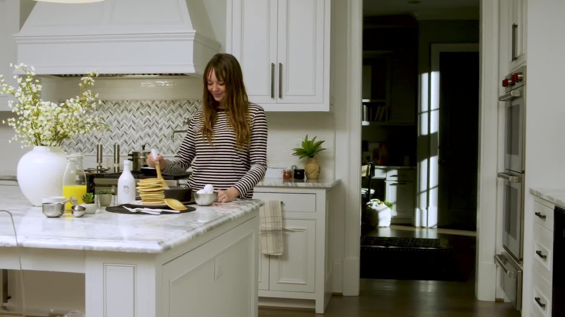 There's plenty to do and explore with two different modes and 6 recipes to follow. The Play Mode encourages babies to explore as they twist the faucet and stove knobs, tap the 4 Magic Touch buttons and/or open the stove to activate lights, kitchen sounds and music. Discovery Mode teaches toddlers foods, colours, and shapes in 4 languages – English, Spanish, French and German. Follow the 6 included recipes to "cook" breakfast, lunch, or dinner.