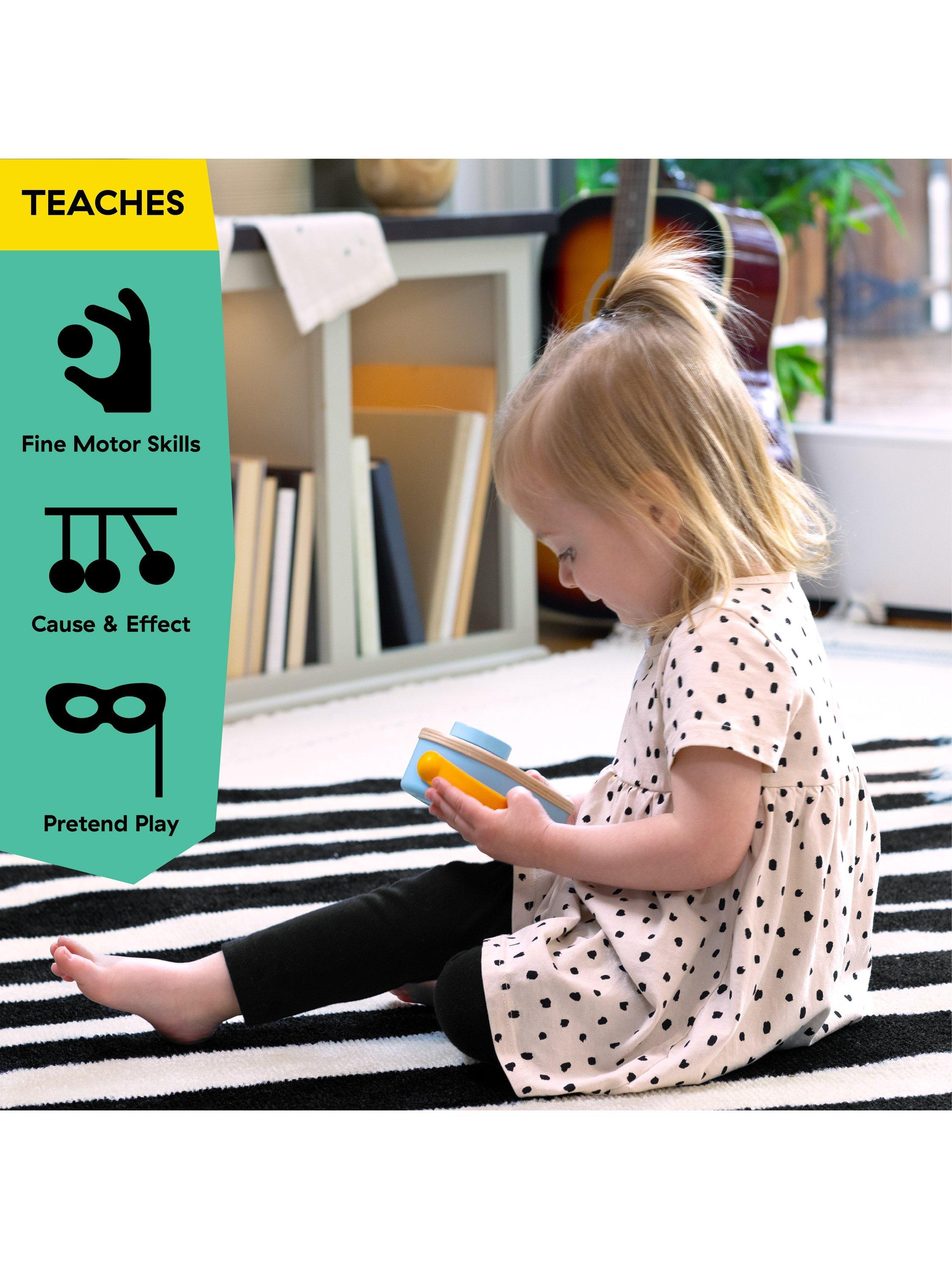 Tune into fine motor skill development and cause and effect discovery with the Baby Einstein + Hape Discovery Radio Toy Radio.
