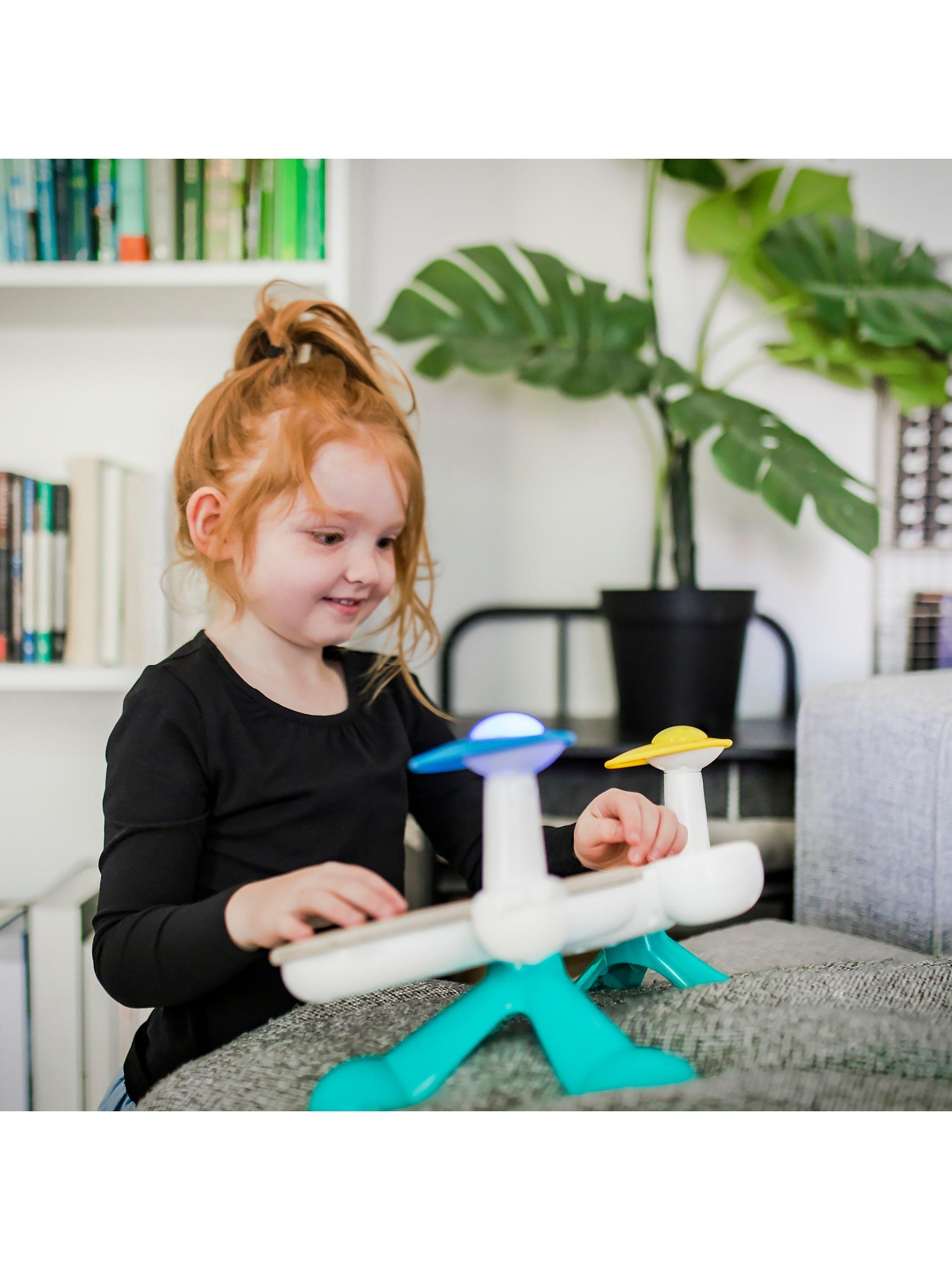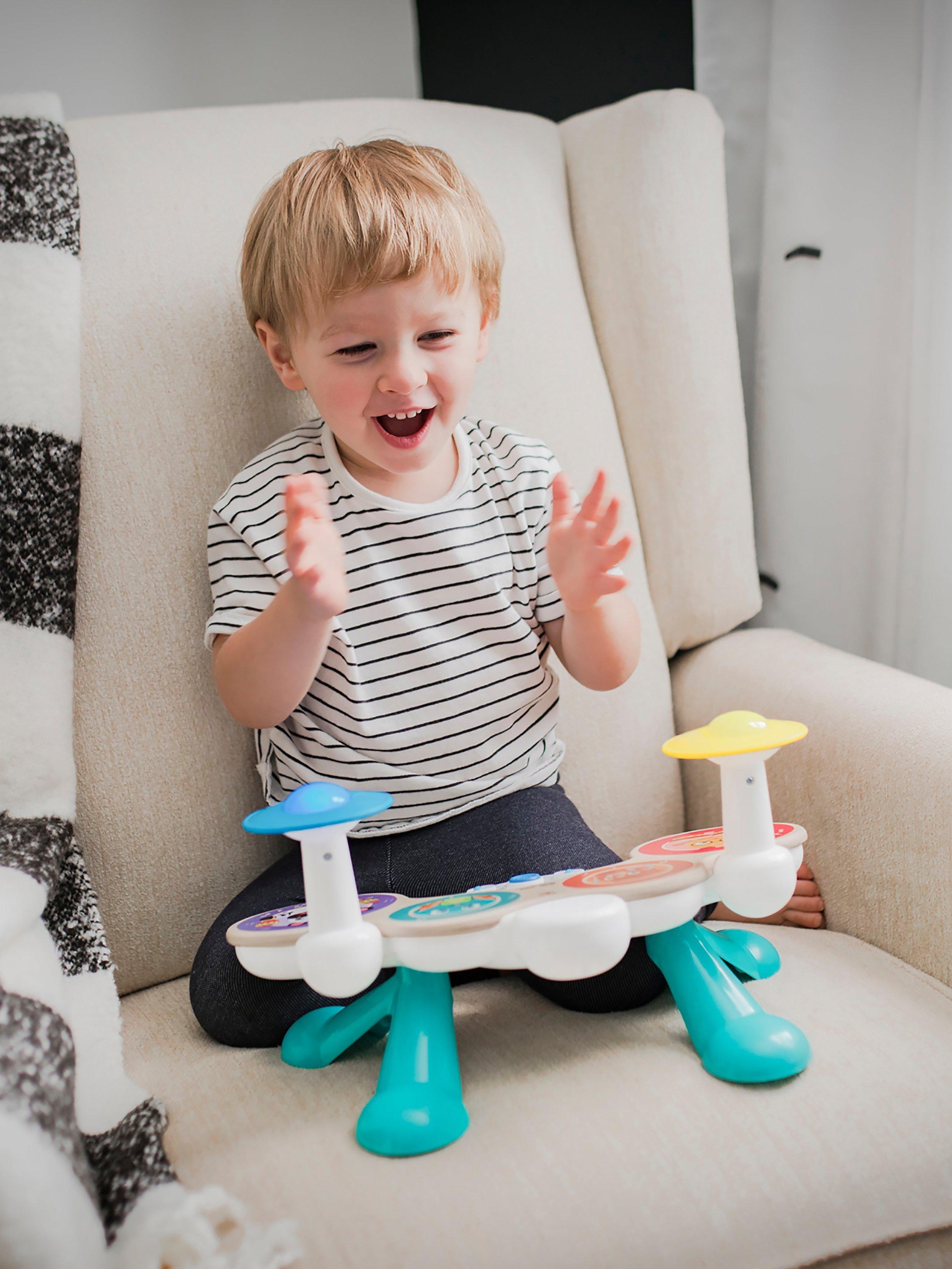 Want to teach your kids to play together in harmony? Together in Tune Drums™ is a musical toy for toddlers and infants that empowers them to jam on their own or together with siblings and friends. It wirelessly connects to other Together in Tune™ instruments (sold separately) within range and harmonizes automatically, creating beautiful music that Mom and Dad will enjoy as much as their children do.