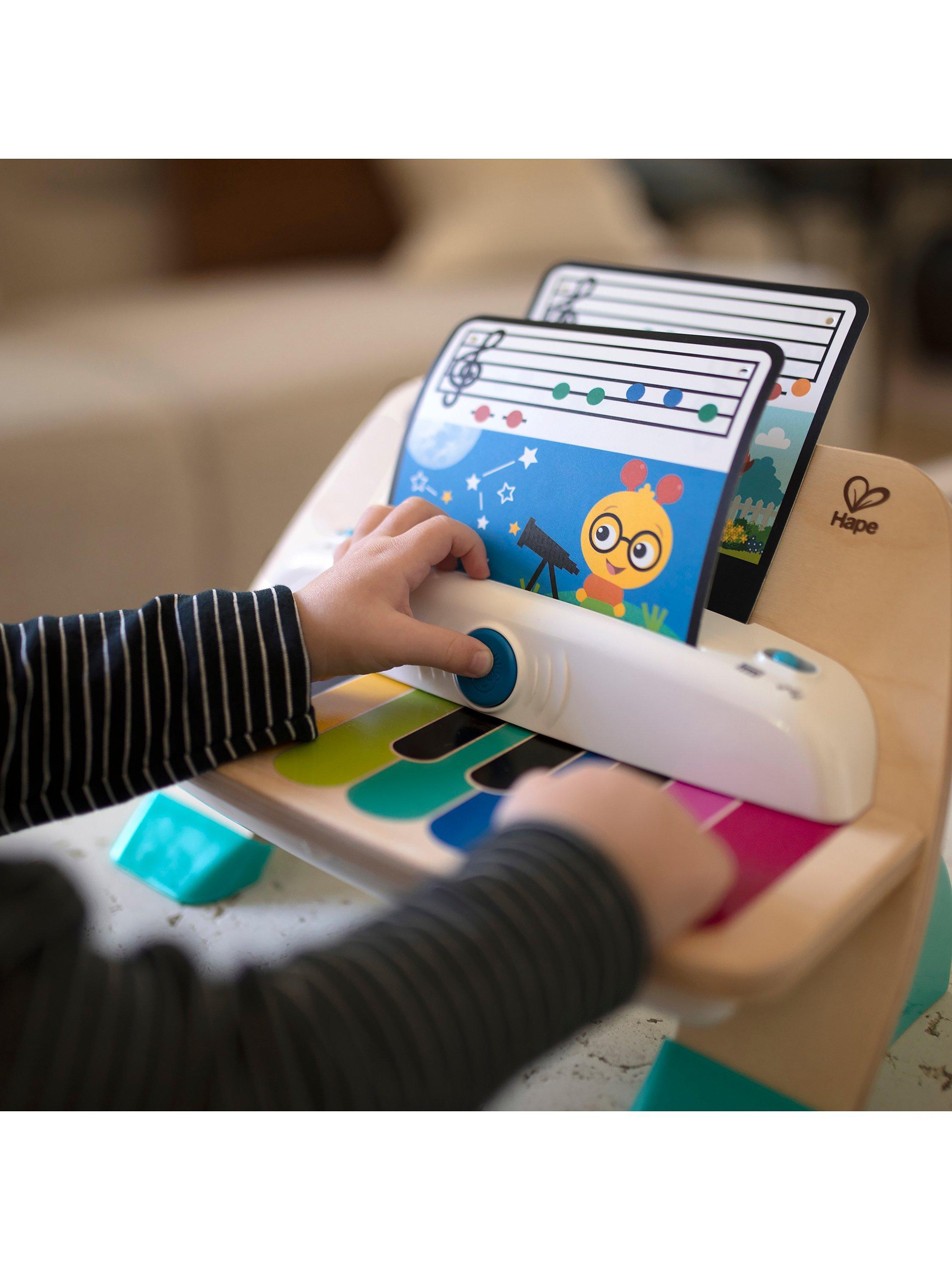 With the delicate touch of her little fingers, Baby Einstein and Hape’s Magic Touch Piano will let baby create thousands of different songs. Made from wood, this piano toy features magic touch technology – no buttons or keys needed! Two modes of play give your toddler the ability to make her own music or play along with classic melodies. Giving your baby toys that make music helps her tune into different rhythmic patterns and sounds at a young age.