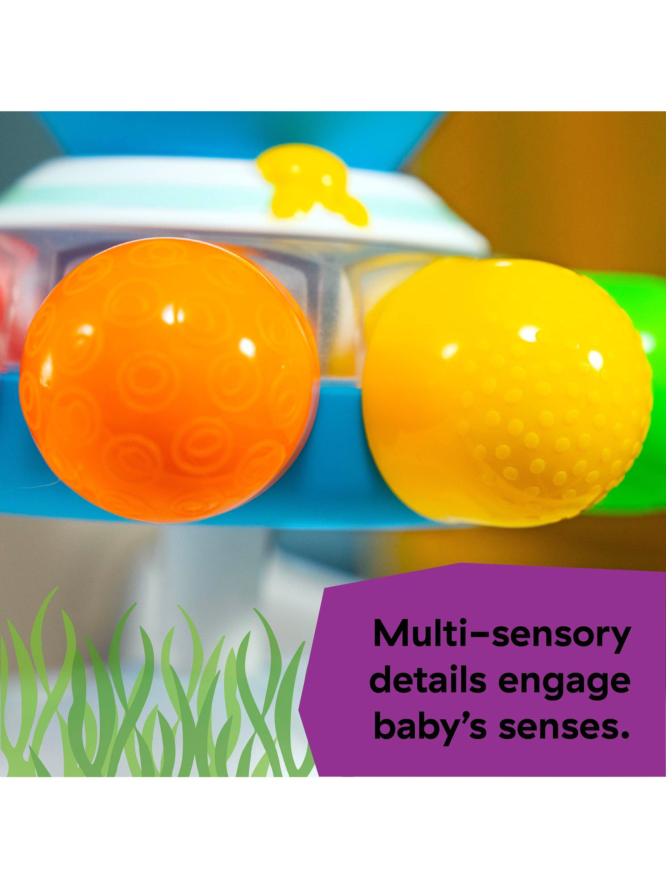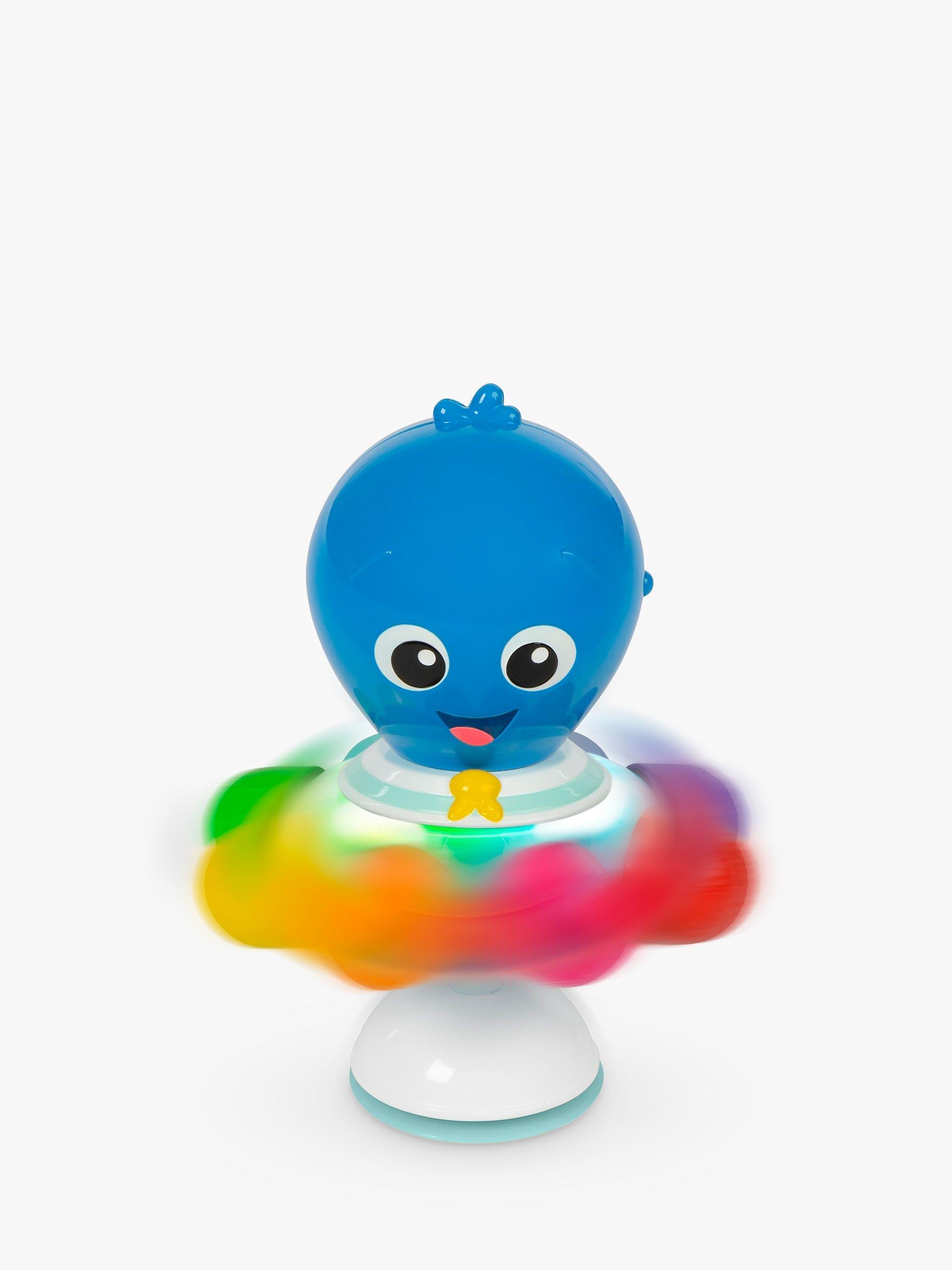 The Baby Einstein Ocean Explorers Opus's Spin & Sea Suction Cup Toy helps baby take multi-sensory learning for a spin with lights and vibrant colors designed to engage and entertain baby at home or on the go. Baby will love to see Opus the Octopus light up and spin his arms with every press, as well as explore the toy's textures, rattles, and vibrant colours. Parents and guardians will love the cause-and-effect learning, visual stimulation, and colour discovery baby gains through play with this sensory toy.