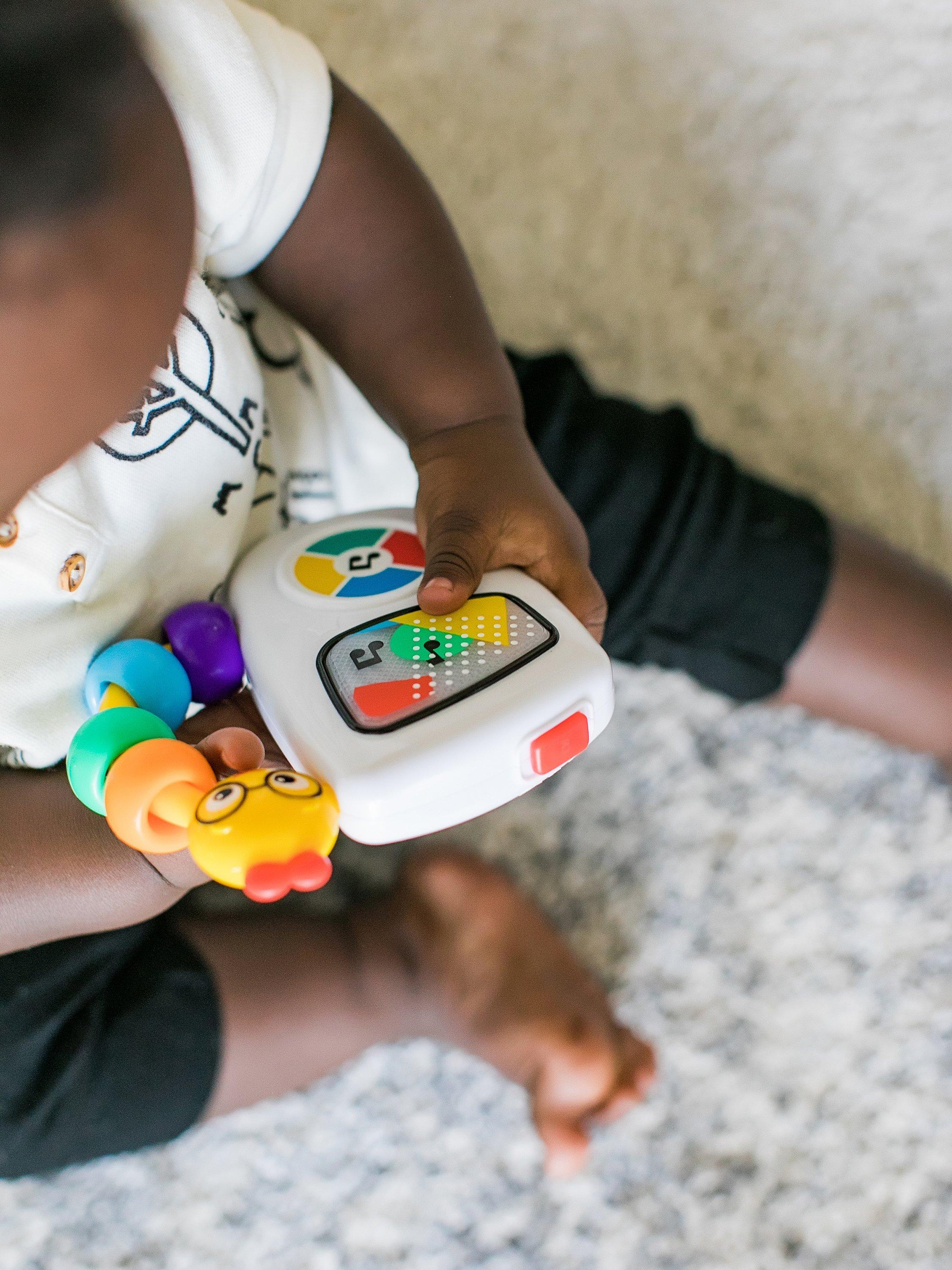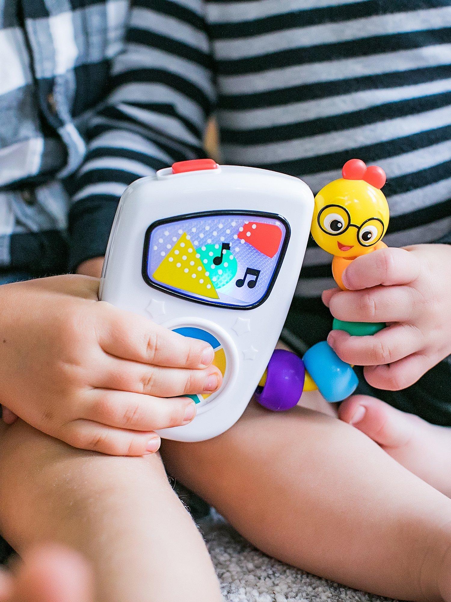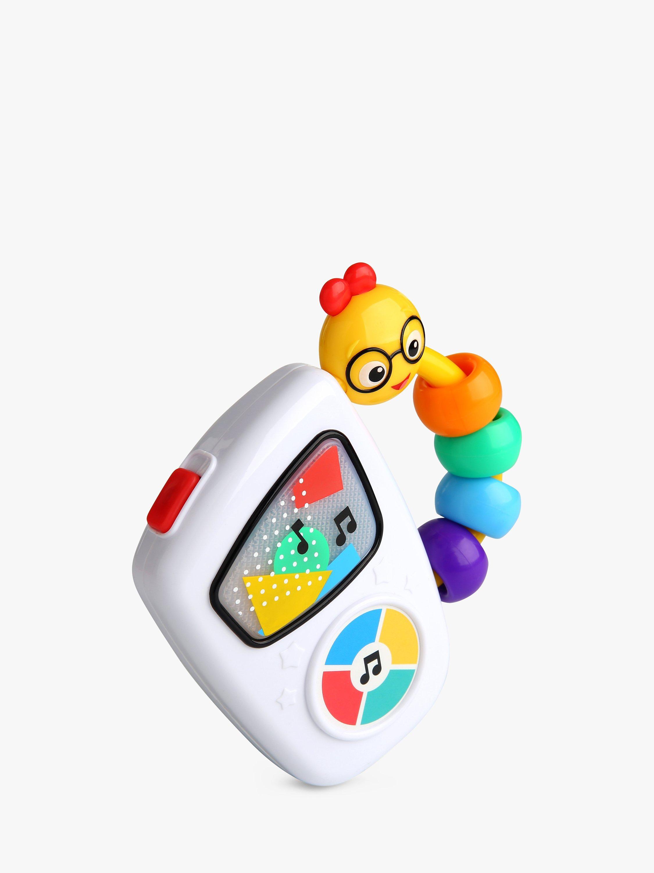 The award winning Baby Einstein Take Along Tunes Musical toy is made for little maestros. This easy to grasp, on the go toy is your little musician’s opening act and will quickly become a favourite. It’s important to give your baby toys that play music to foster music appreciation at a young age. With the Take Along Tunes musical toy, babies can use the large button to toggle their way through recreated classical masterpieces from Chopin to Mozart and more. Colourful lights dance across the screen to the rhythm of each melody, captivating your baby while encouraging both auditory and visual perception.