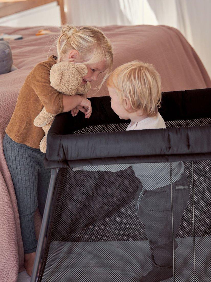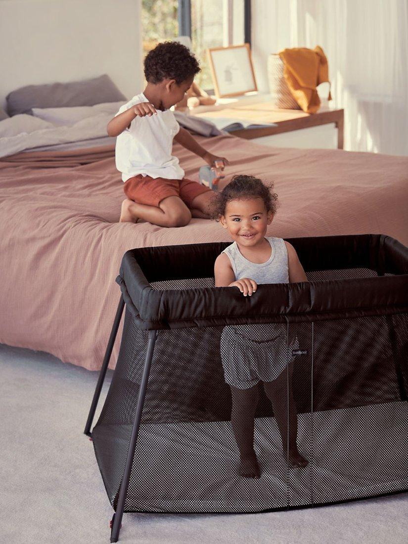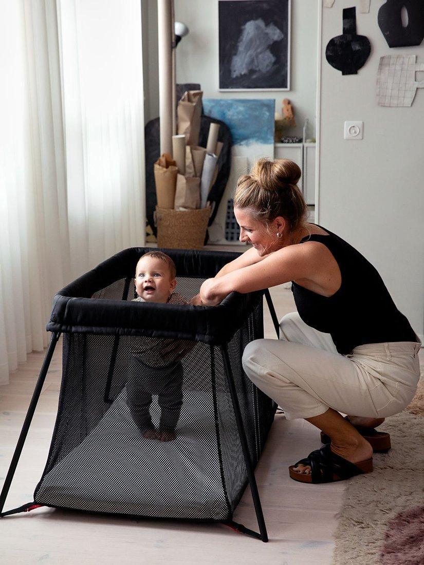 Sleeping away from home with a baby or toddler has never been easier with this travel cot from BabyBjörn. Open the carry bag, lift out the travel cot and set it up in one movement. It's light, durable, simple to set up and comes complete in a carry case with a mattress. The comfy mattress makes it a cosy sleeping place for at home or wherever your family goes. Plus, the full mesh sides enable you to see everything baby is getting up to.