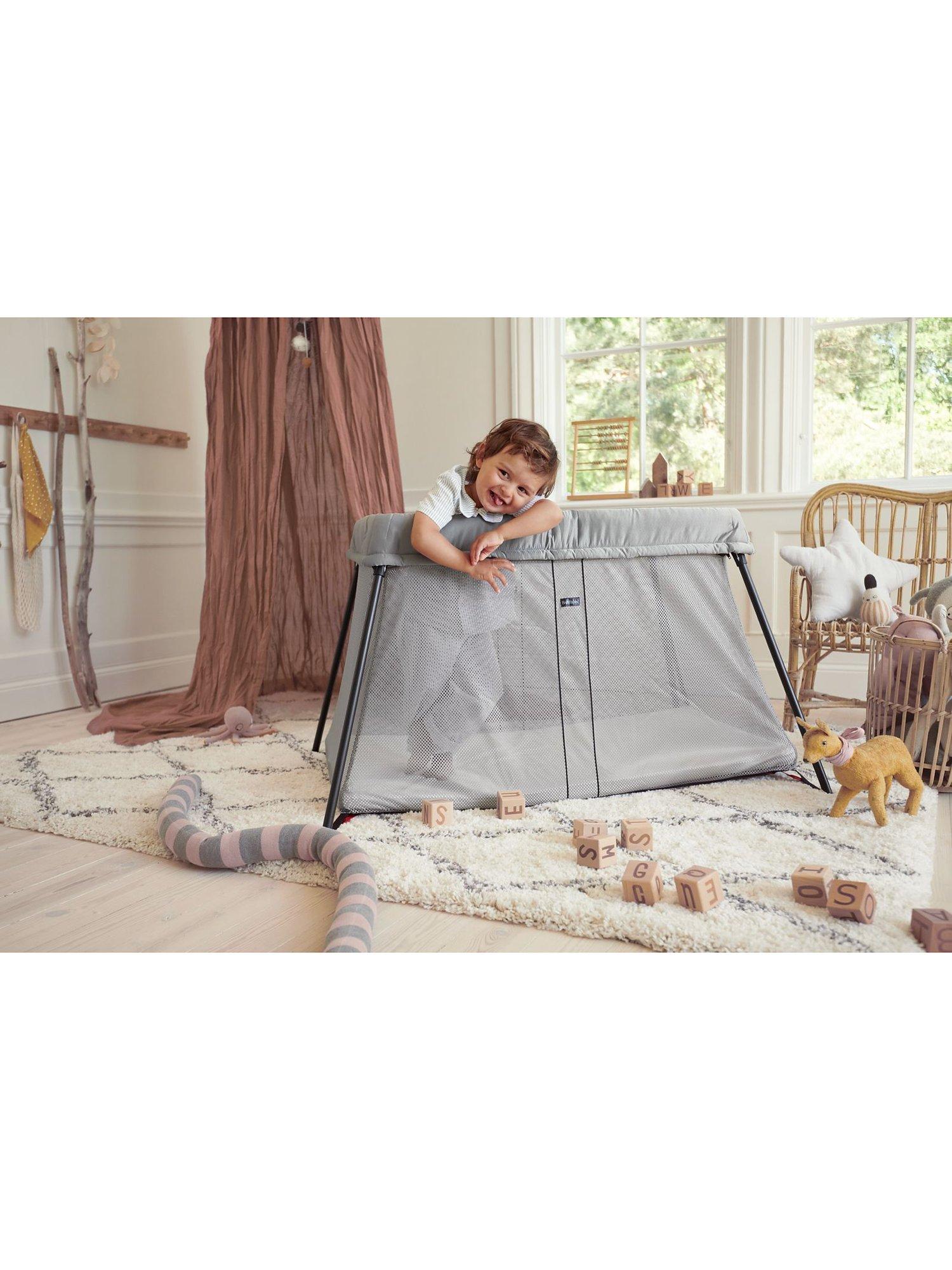 Sleeping away from home with a baby or toddler has never been easier with this travel cot from BabyBjörn. Open the carry bag, lift out the travel cot and set it up in one movement. It's light, durable, simple to set up and comes complete in a carry case with a mattress. The comfy mattress makes it a cosy sleeping place for at home or wherever your family goes. Plus, the full mesh sides enable you to see everything baby is getting up to.