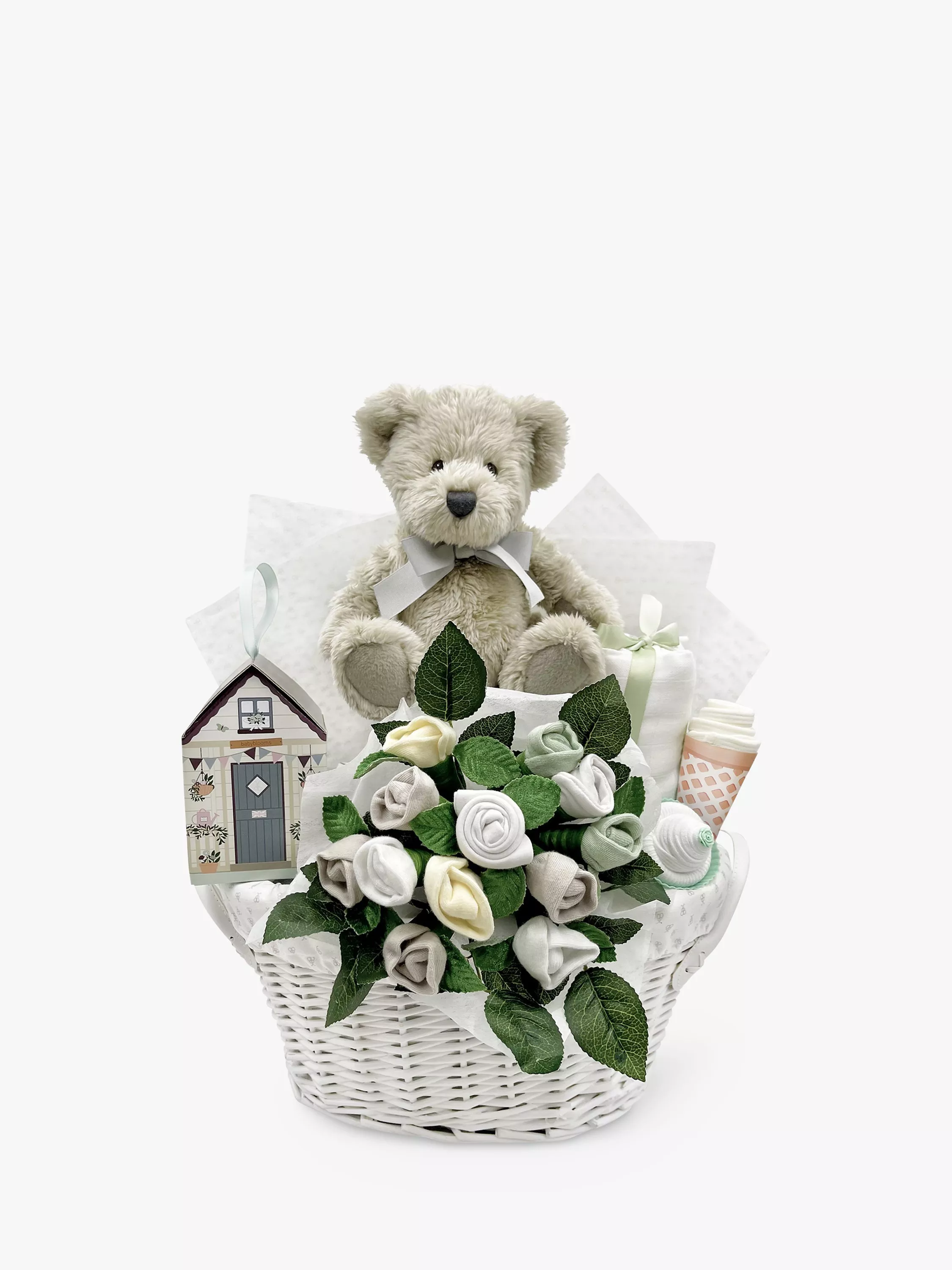 A gorgeous way to send your congratulations to a new mum and baby, this Berkeley Bear's New Baby Gift Basket by Babyblooms is packed full of goodies for a thoughtful and practical gift. Whether a maternity leave present or a celebration of the new arrival, this basket comes beautifully packaged with a gift card bearing your message.
