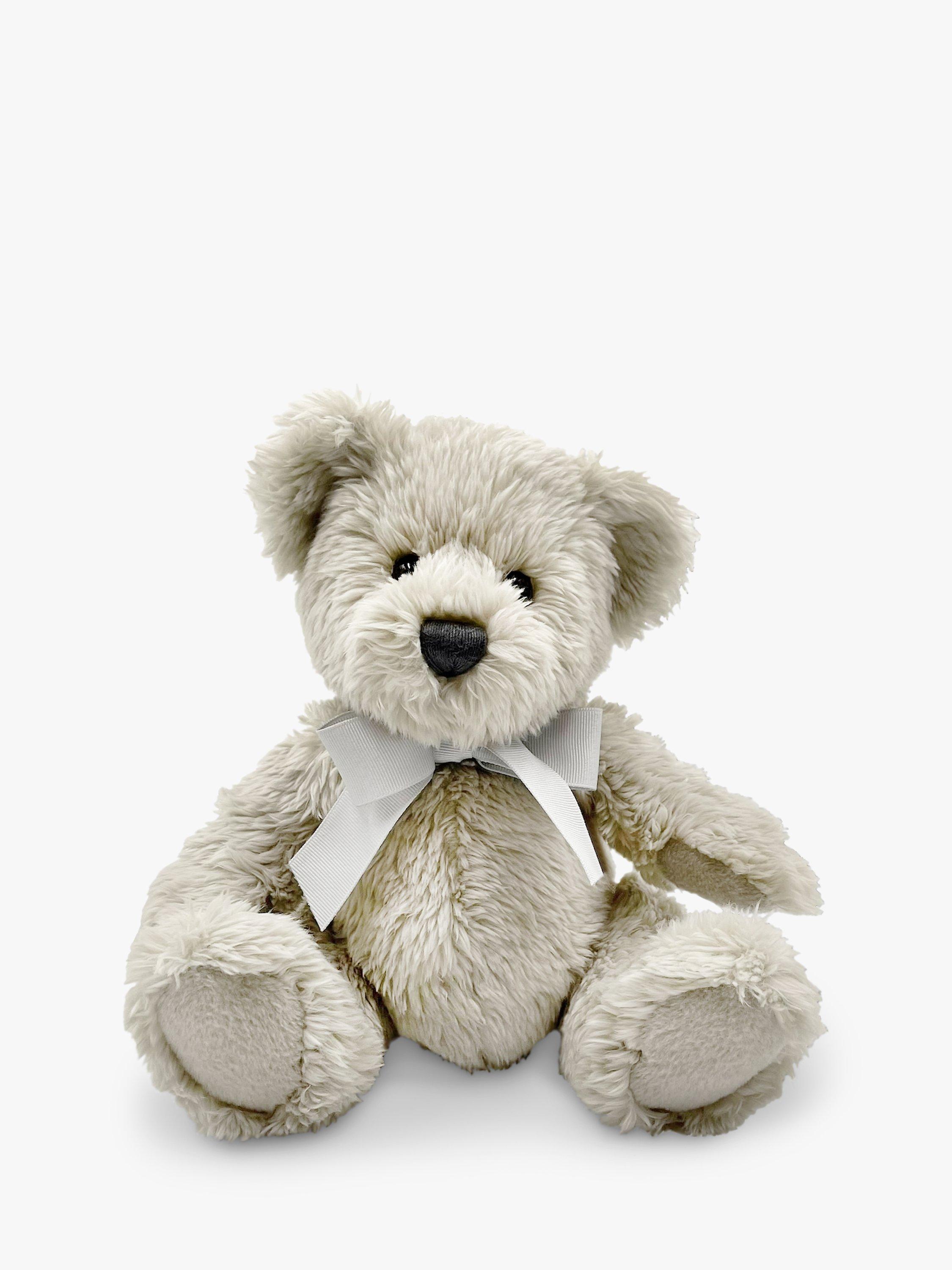 - A traditional style Berkeley bear with embossed white ribbon around the neck