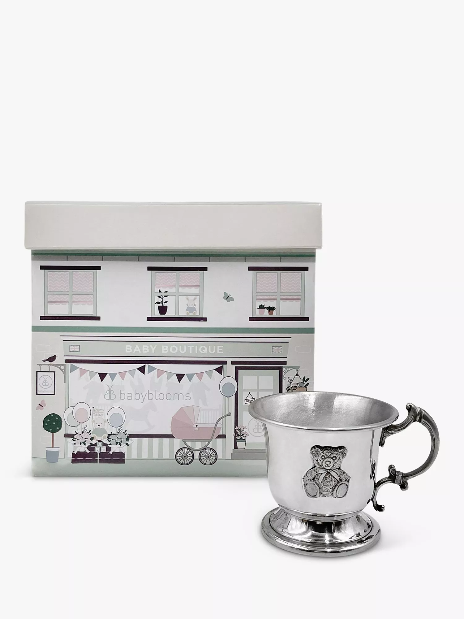 This traditional child's cup is handcrafted from the finest English pewter and made in the UK exclusively for Babyblooms. Designed in a traditional pedestal shape and decorated with an adorable pewter teddy bear motif, this would make the perfect gift for a new baby, a Christening, Baptism, Naming Ceremony or a special occasion in any new baby's life.