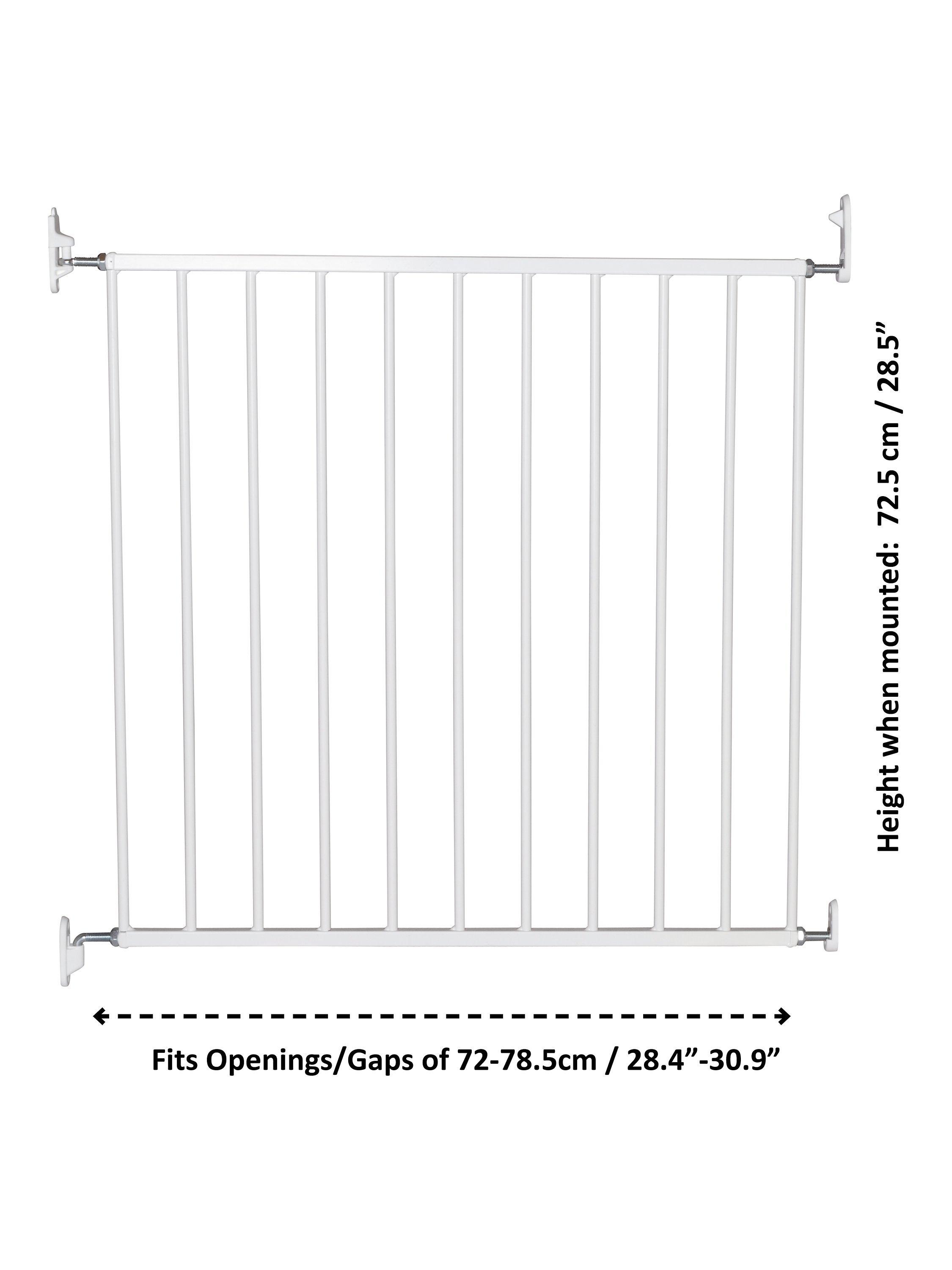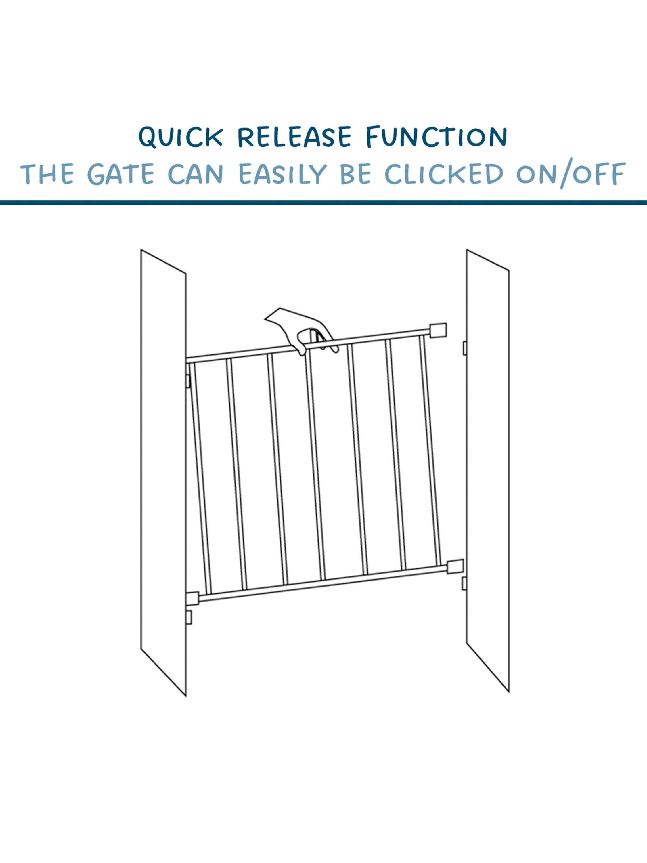 Can be fitted to the top or bottom of the stairs, as well as many other places. Includes a stop pin so that the gate doesn't open over the stairs. Unique child-proof quick-release fittings allow super quick installation and removal. Double locking.