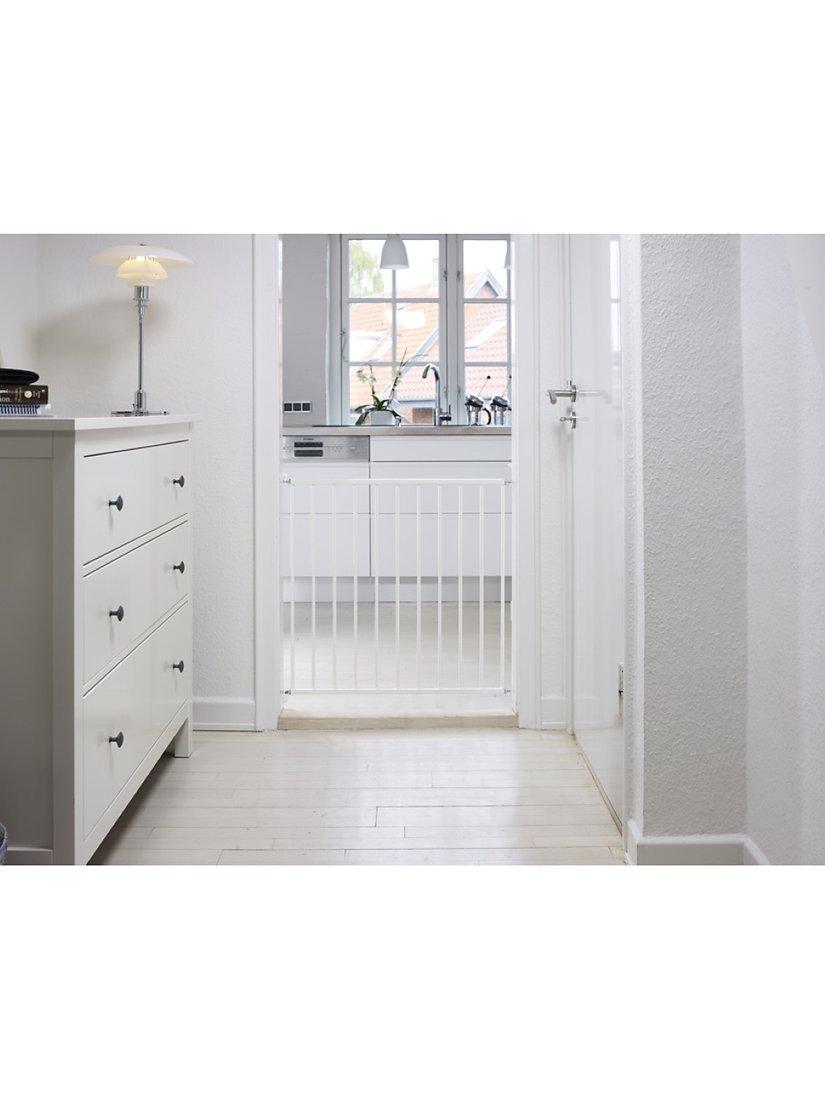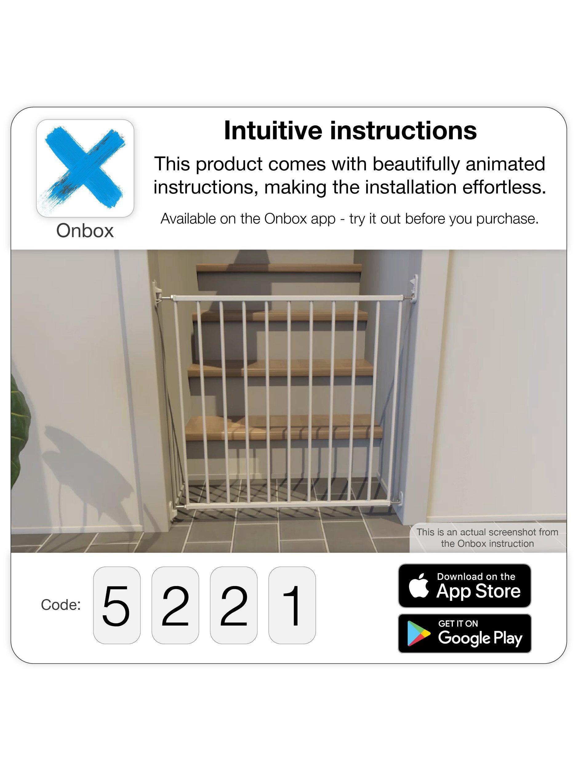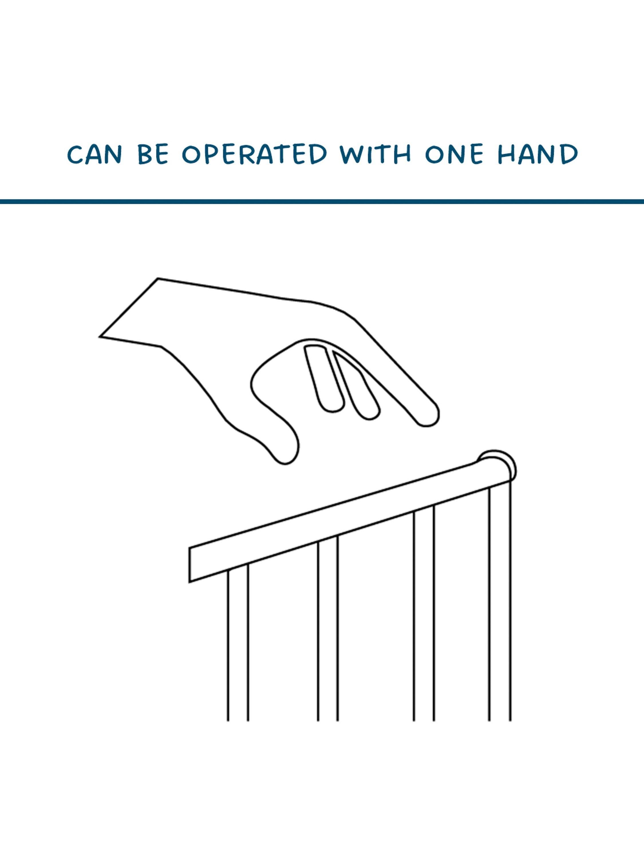There are no bars or foot plates that you could trip over when passing through this safety gate, making it ideal for the top of the stairs. It can be operated with one hand and it opens both ways.