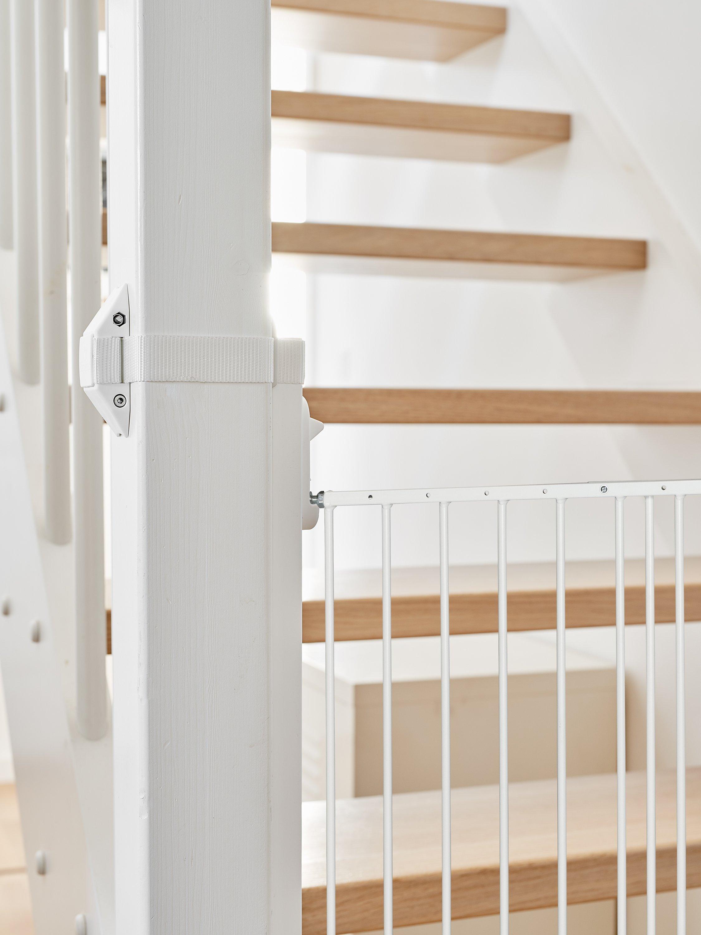 If you need to mount your safety gate between a wall and a round or square baluster, this BabyDan Staircase Adapter is the perfect and safe solution. It provides a flat surface so you can install your wall-mounted or pressure-fit safety gate without ruining the bannister woodwork or metal and without drilling in the baluster.