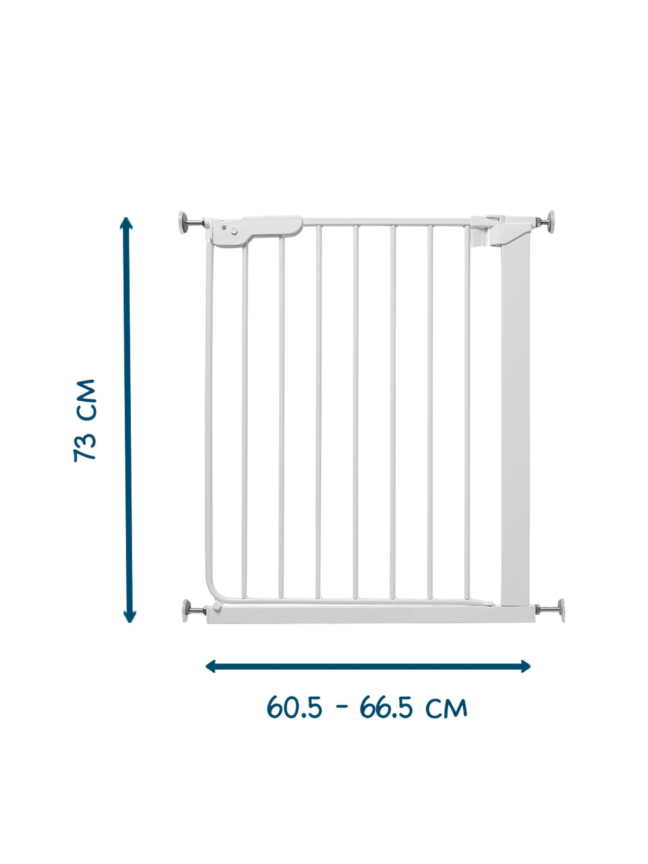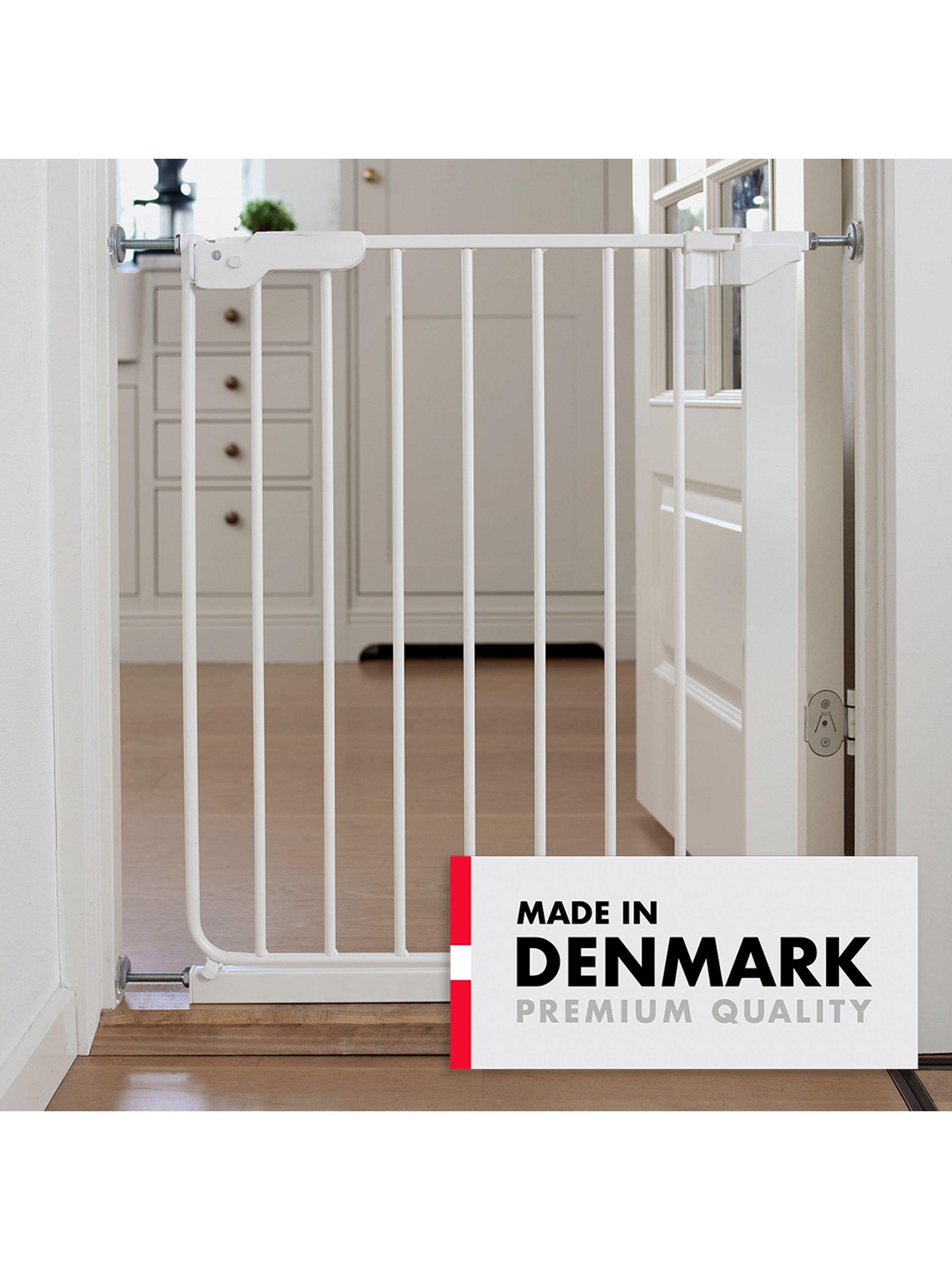 Made in Denmark, it opens both ways, and you can open it with just one hand. Plus, the handle incorporates a simple double-locking mechanism for additional safety. It fits narrow openings from 60.5cm up to 66.6cm, but can be extended to a maximum 93cm with separate extensions (sold separately - max. 4 pieces).