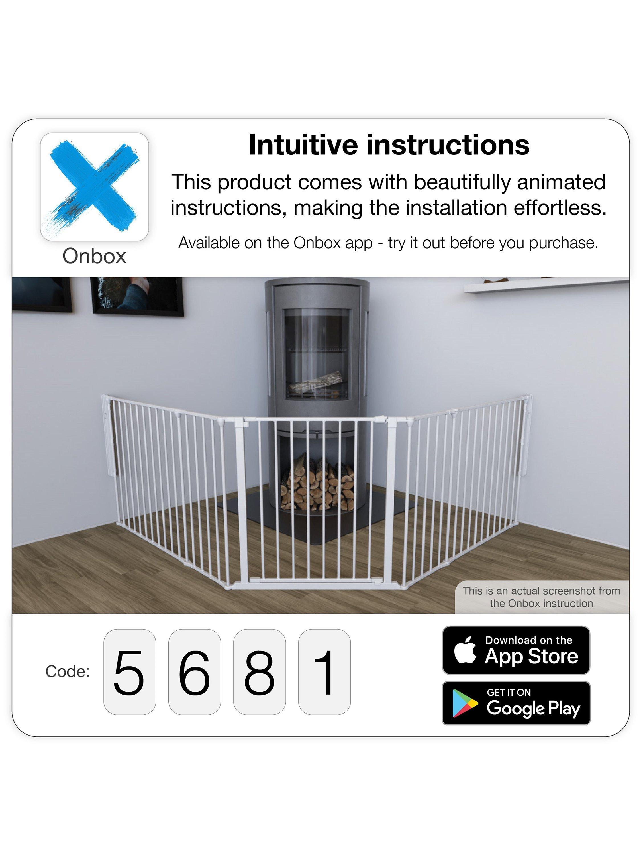 Featuring adult-operated quick-release wall fittings, it has an extra wide door section for easy access. Flexible and easy to fit, it meets up-to-date European safety standards. You can use it as a hearth gate, room divider or safety gate and it is mountable on straight and angled walls. The gate opens either way and can be operated with one hand. It also features a double locking function for extra security.