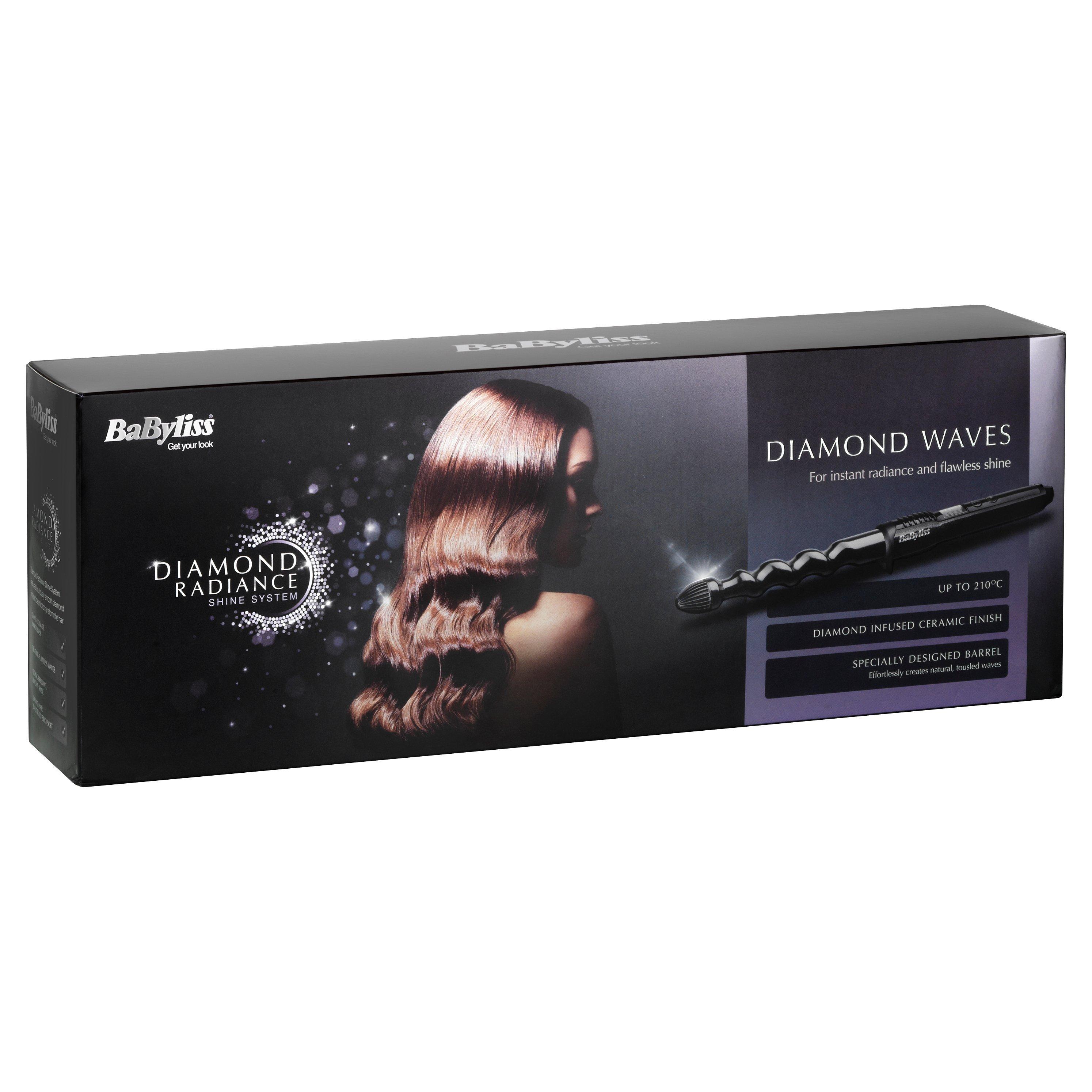 The BaByliss Diamond Waves hair styler features a specially designed barrel which will create flawless, kink-free waves and leave your hair with a beautifully smooth, sleek finish using luxuriously smooth diamond infused ceramic. It has 5 different temperature settings with a top salon temperature of 210⁰C, so it's suitable for all hair types, and the Advanced Ceramics™ heat up quickly so your wand will be ready to use in just 40 seconds.
