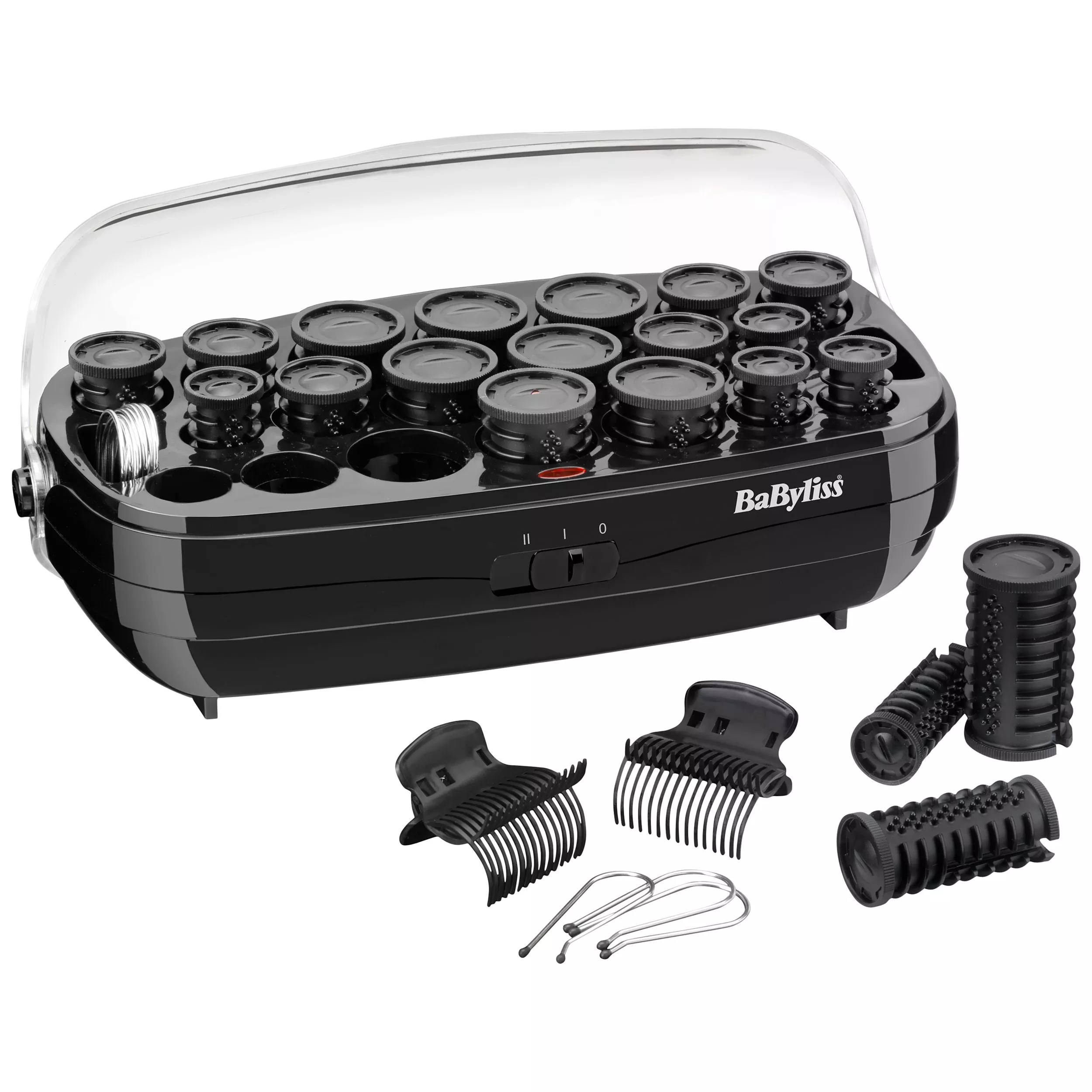 The BaByliss Thermo-Ceramic Rollers include 20 fast-curl ceramic rollers, which deliver high-heat performance for fast, perfect curl formation with a smooth finish. With variable temperature control, it is suitable for all hair types. Includes 3 different size rollers for styling versatility and comes with 10 super clips and 20 metal pins to secure the rollers in place. The rollers have cool ends making it easier to roll the hair. They retain heat for approximately 15 minutes, but cool down slowly to ensure long-lasting results.