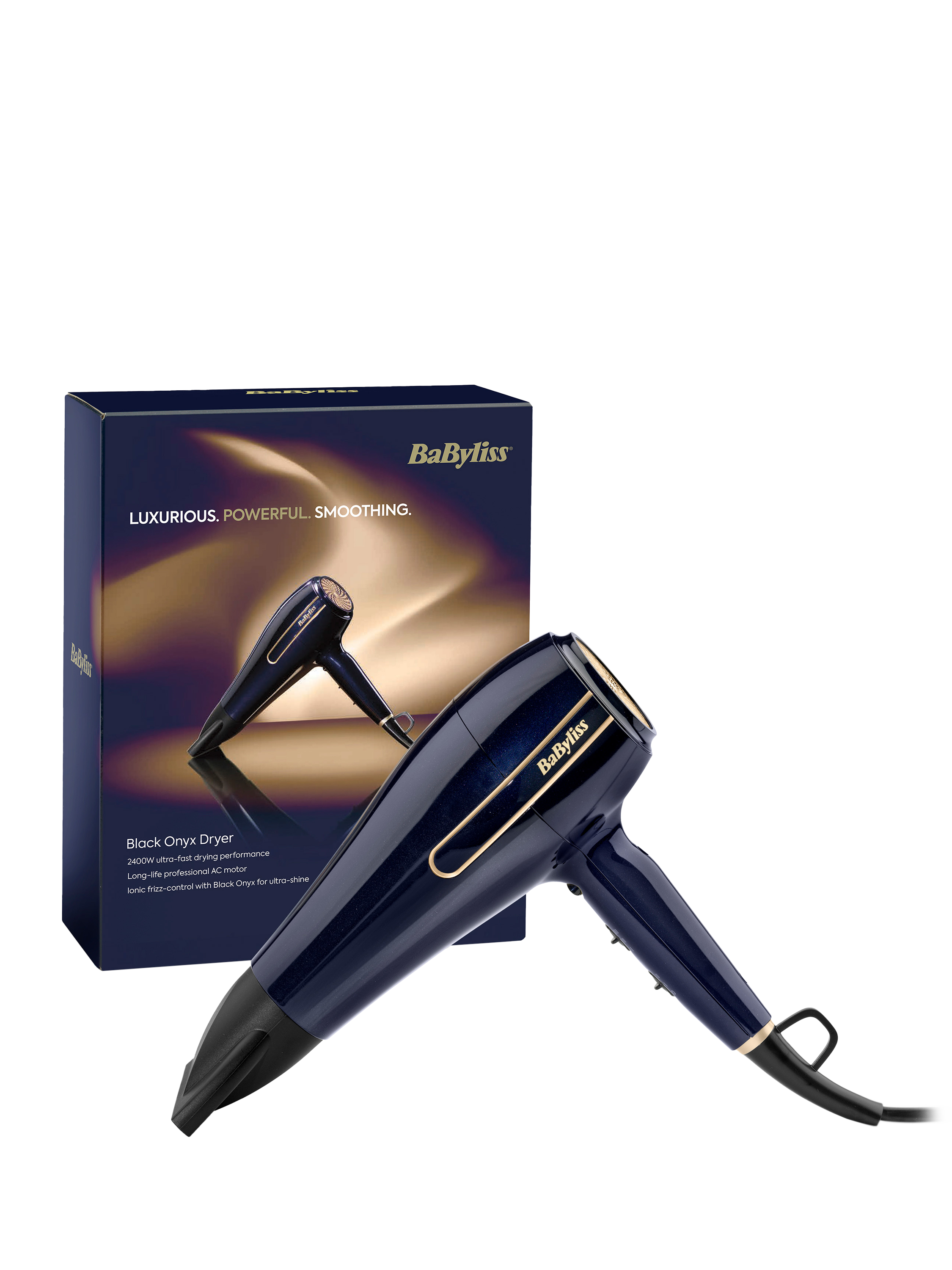 The BaByliss luxurious Onyx Hair Dryer combines power and control for a smooth shiny blow dry.