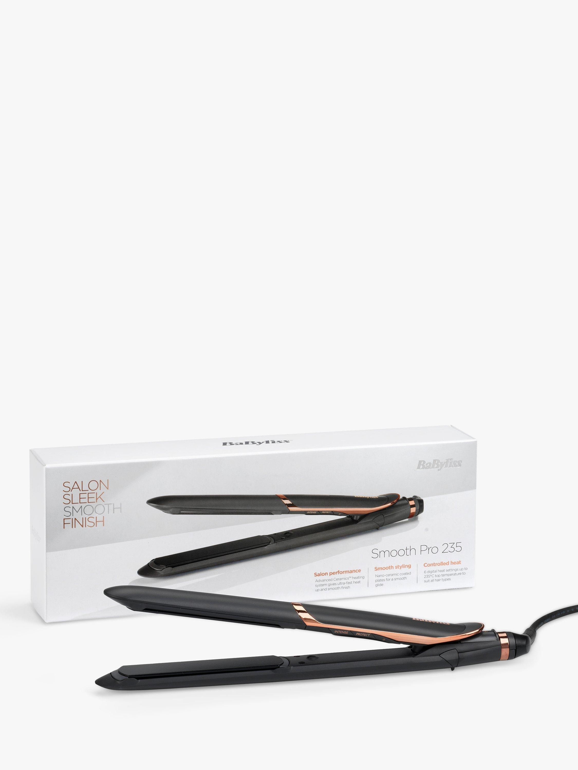 The BaByliss Smooth Pro 235 straightener delivers smooth, sleek finish using smooth glide nano-ceramic plates and ionic technology. Professional heating system delivers a fast heat up to 235°C high heat with variable heat control, suitable for every hair types for enhanced heat protection.
