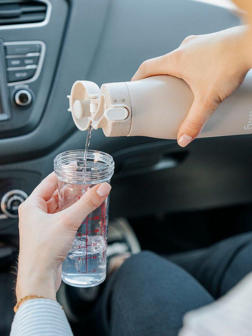 It's easy to charge and comes with a one-metre-long USB-C cable to connect to an electric socket, cigarette lighter or even your PC. Ergonomic and easy to carry with its secure lid, you can pop it inside your bag without the risk of spills. Its pouring spout makes it easy to transfer the hot water into your baby's bottle.