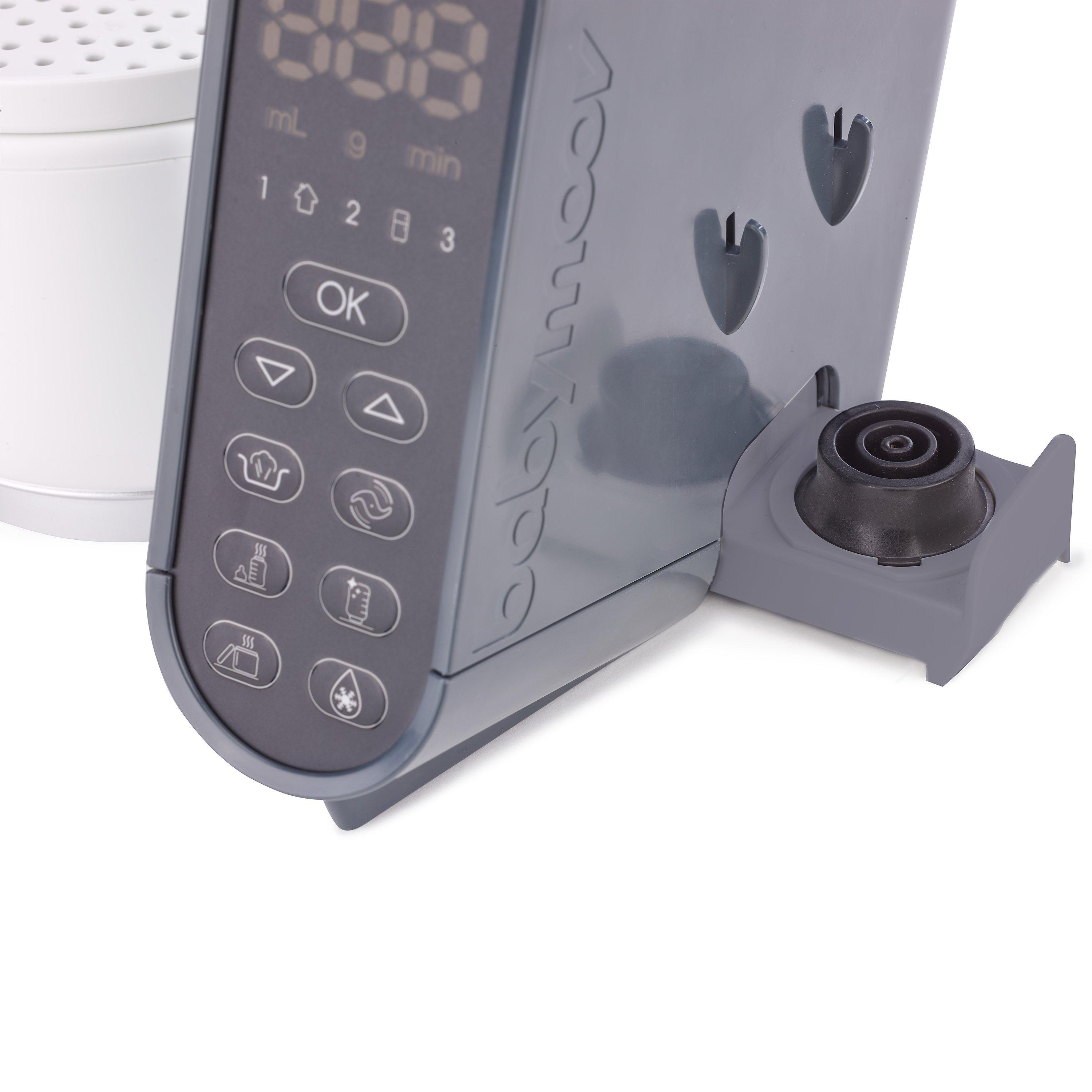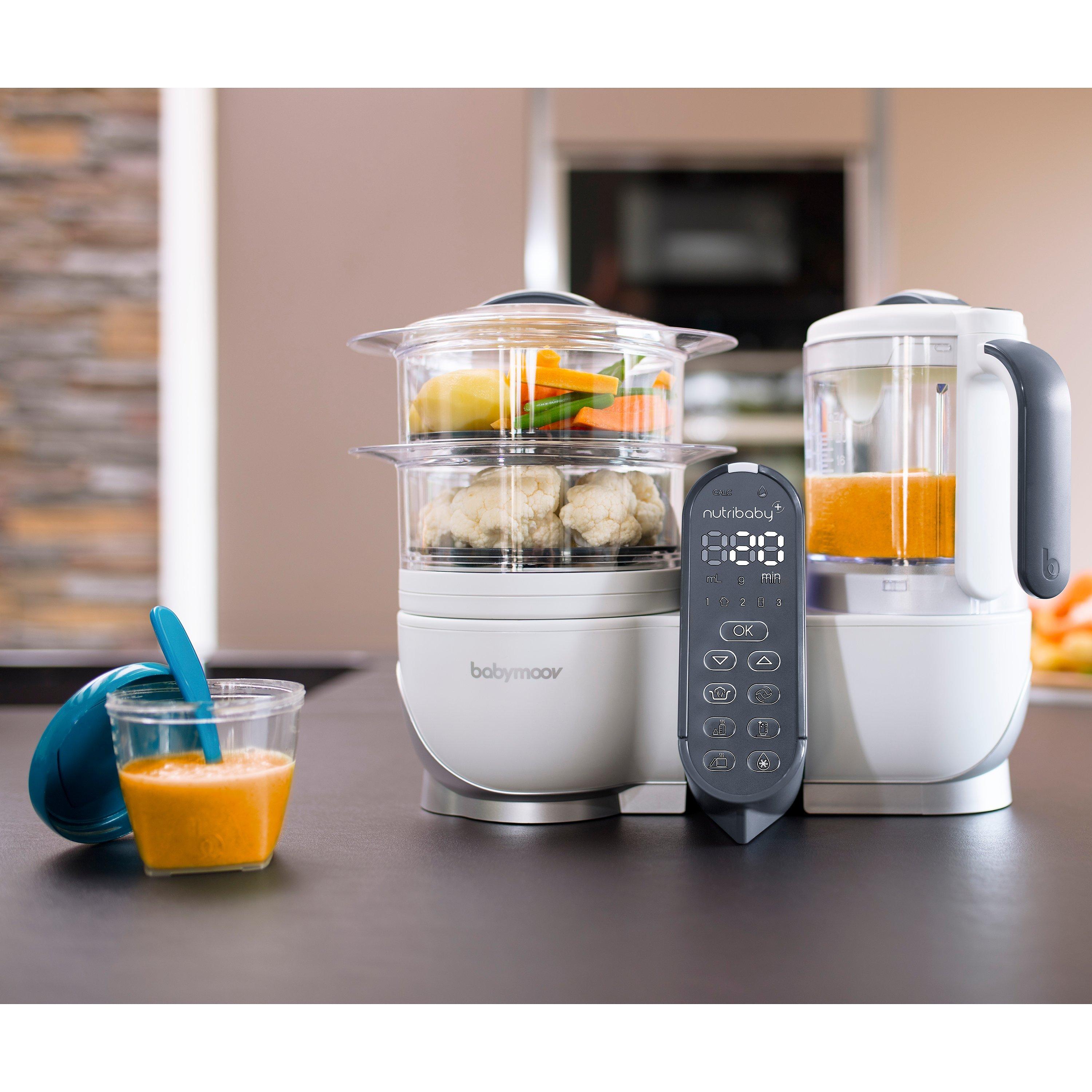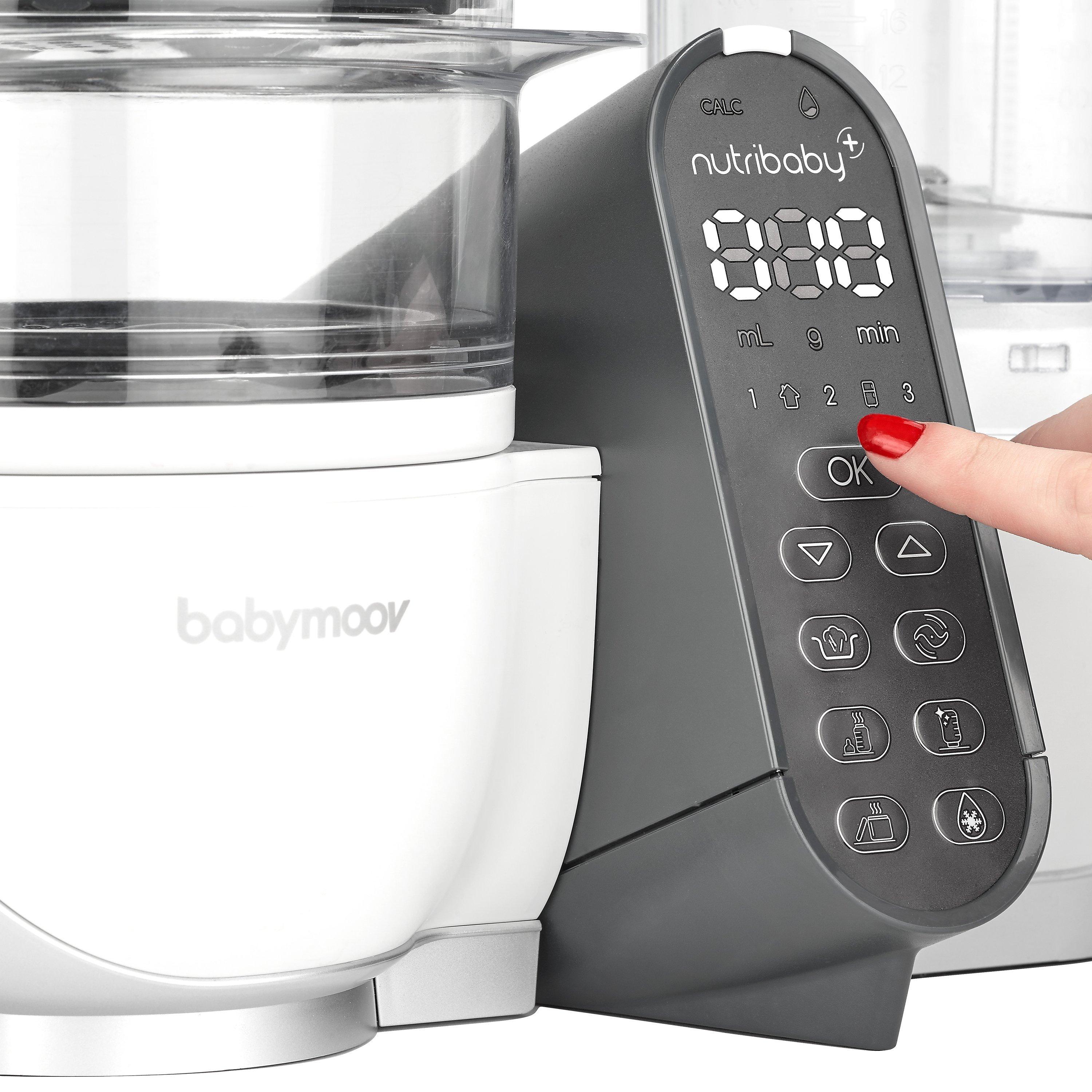 The Babymoov Nutribaby+ is a 4-in-1 appliance functioning as a bottle warmer, steriliser, steamer and blender.