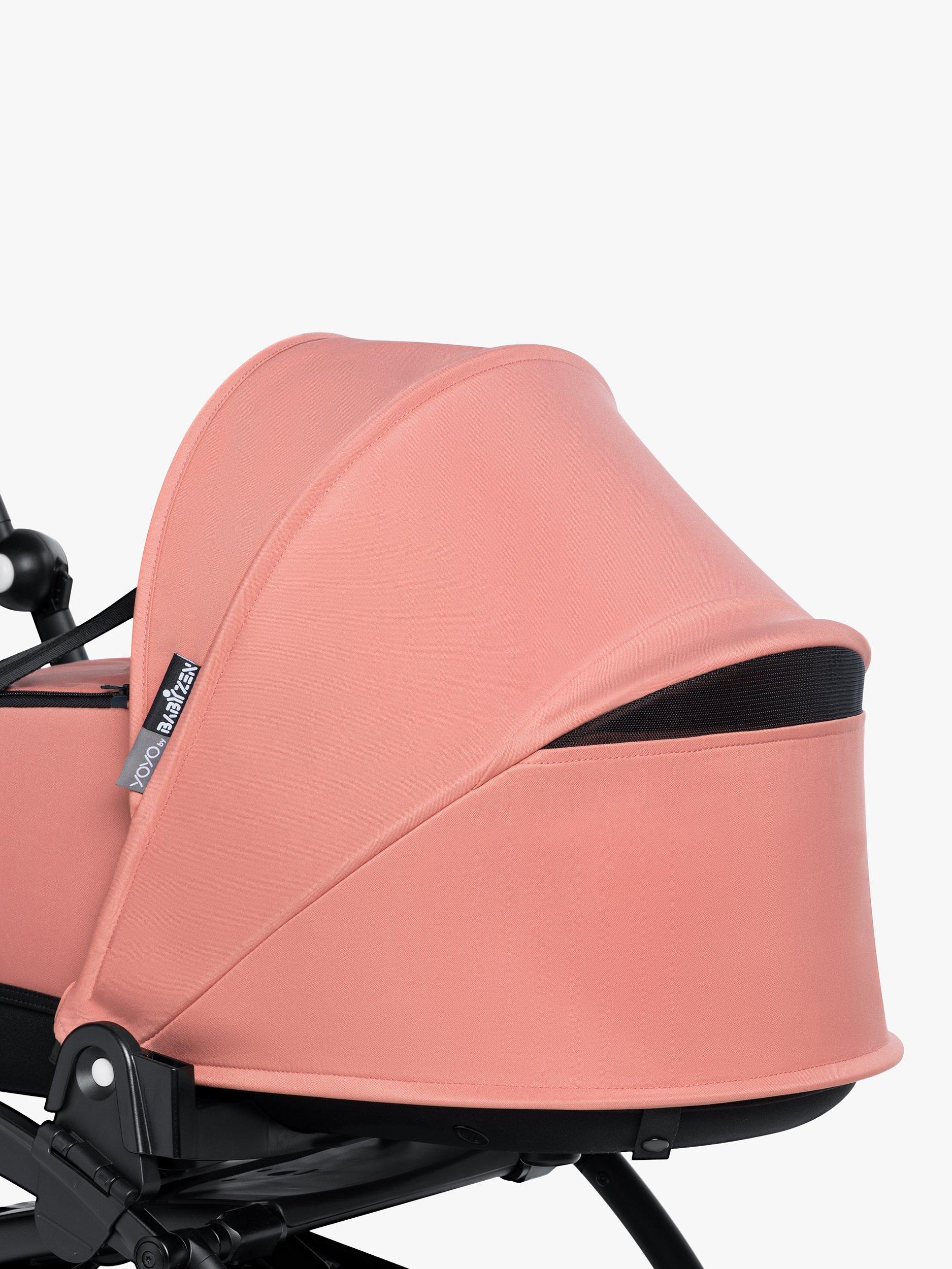 With its breathable double mattress, shell and canopy designed to let air flow freely, the baby will be comfortably snuggled in. Created for newborns who weigh up to 9kg (approx. 6 months old), the YOYO bassinet is positioned on top of the stroller’s frame, so you can be close to your baby.