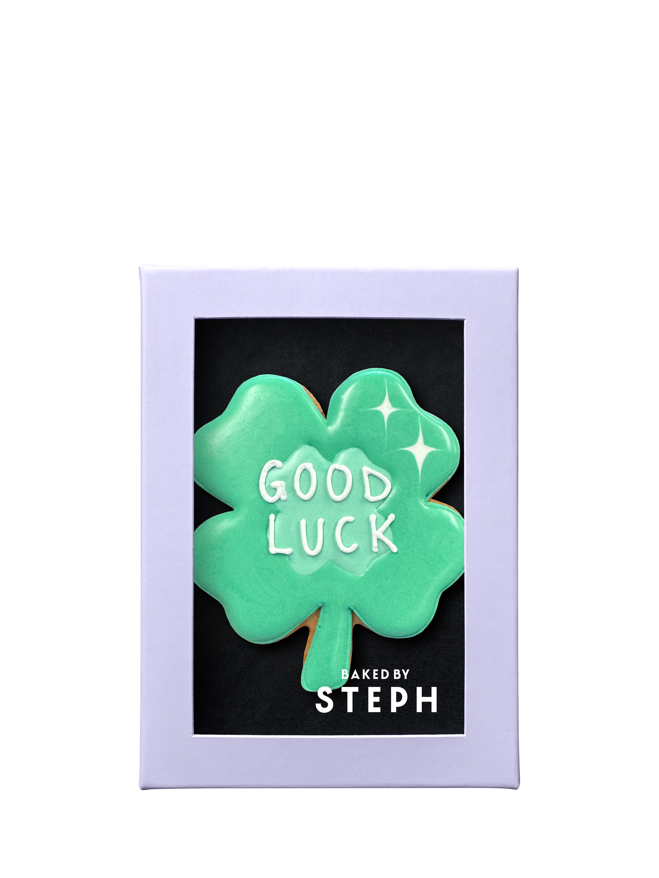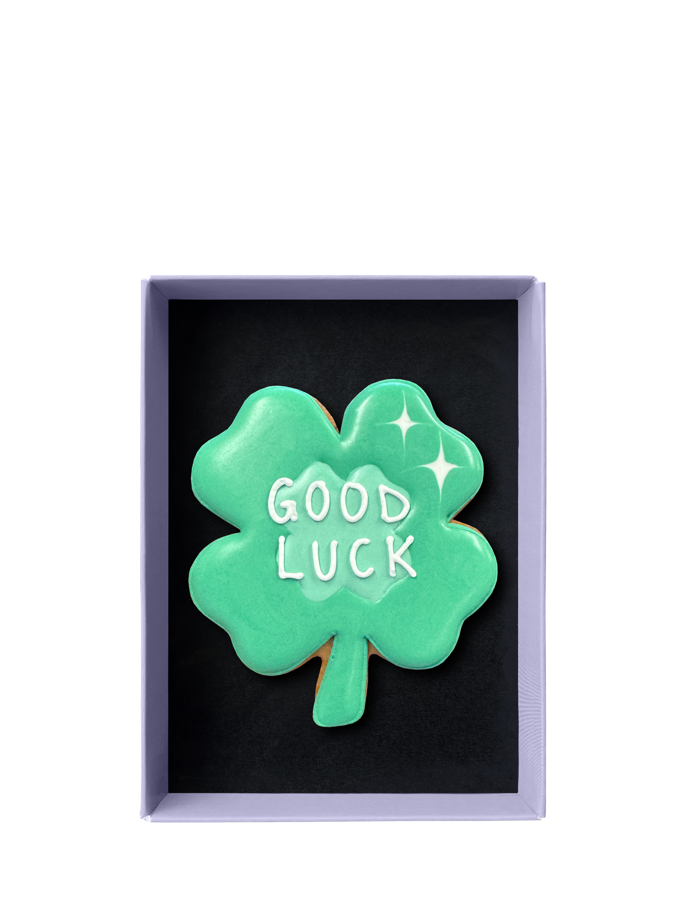 This soft and buttery hand-iced sugar clover cookie makes the perfect little gift to wish them good luck.