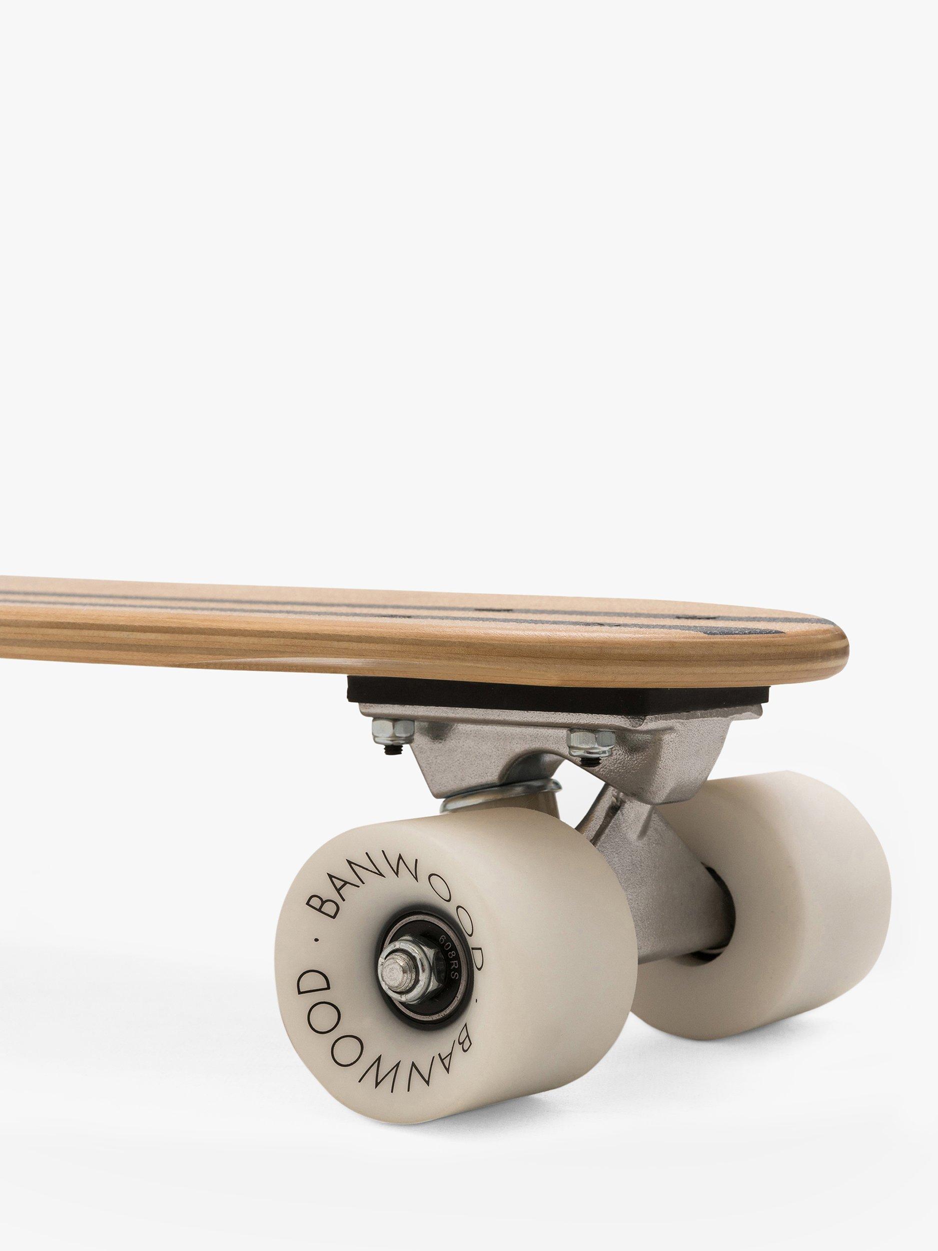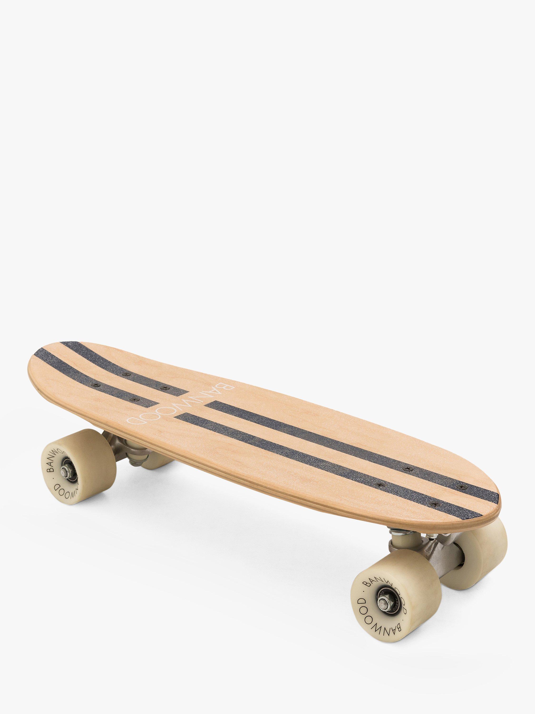 The Banwood Skateboard is a small cruiser board designed for a relaxed ride that both beginners and experienced riders can enjoy. Made out of natural Canadian Maple, the deck features a soft, transparent grip designed with your little one's bare feet in mind. The boards also include soft, high rebound wheels perfect for an easy and stable ride. Banwood's new skateboard collection combines a signature, simple and nostalgic designs with vintage elements in playful pastels.