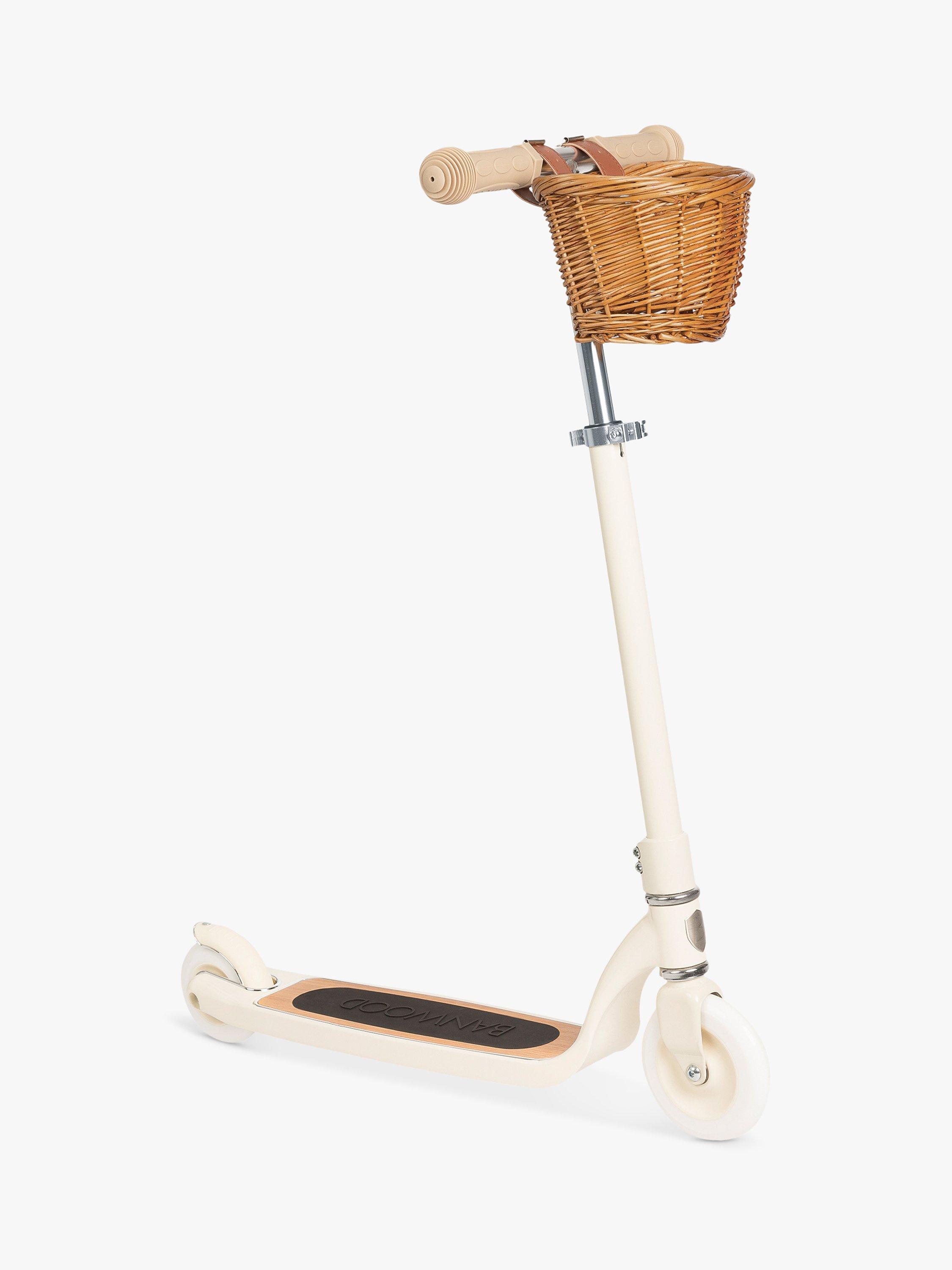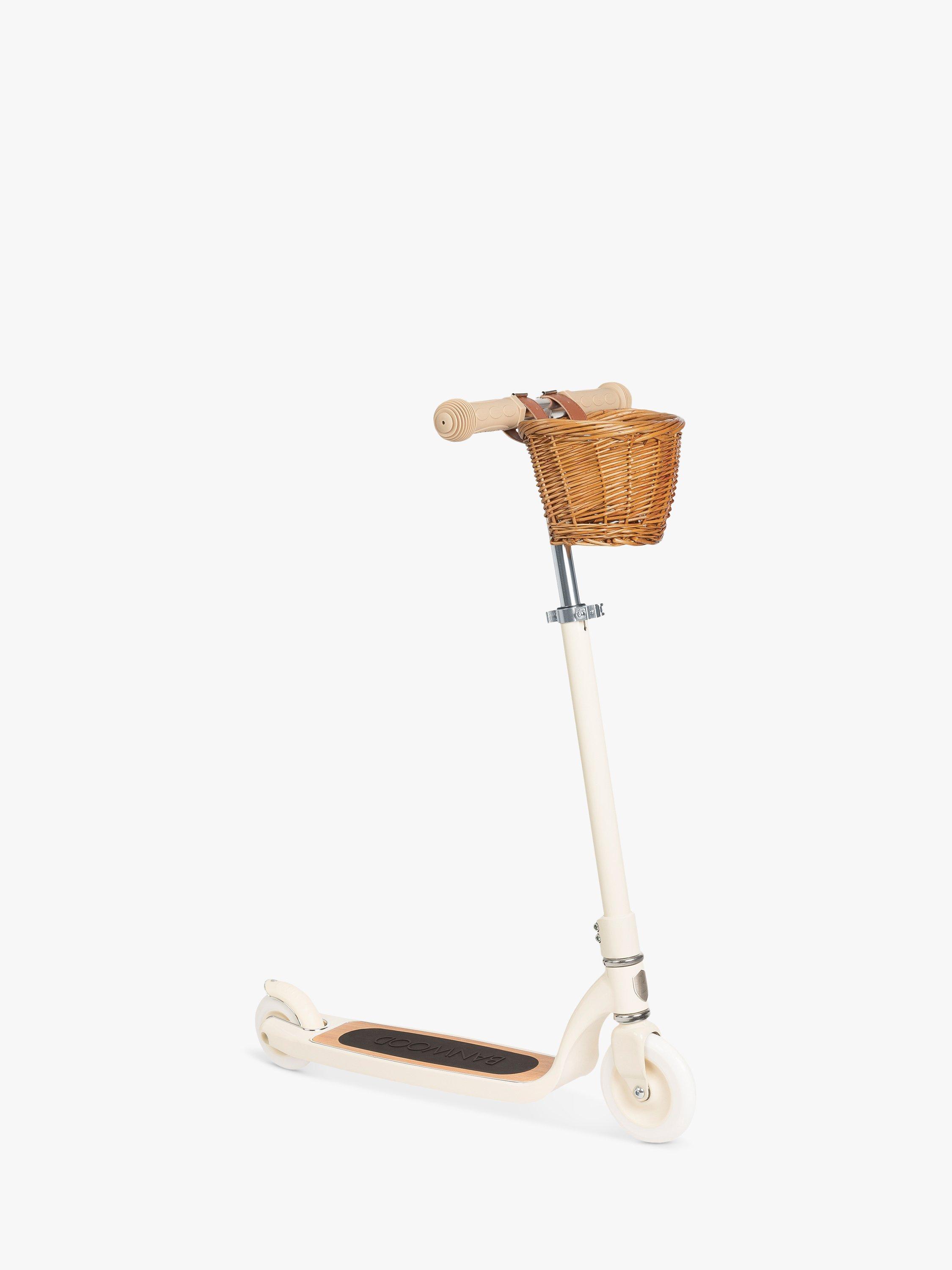 This scooter is built to last the test of time with a lightweight aluminium frame and a wooden oak anti-slip deck for a safe ride. It is equipped with an ergonomic T-handlebar that can easily be adjusted from 74.5-84.5cm. A wicker basket adds a vintage touch. Suitable for ages 6+.