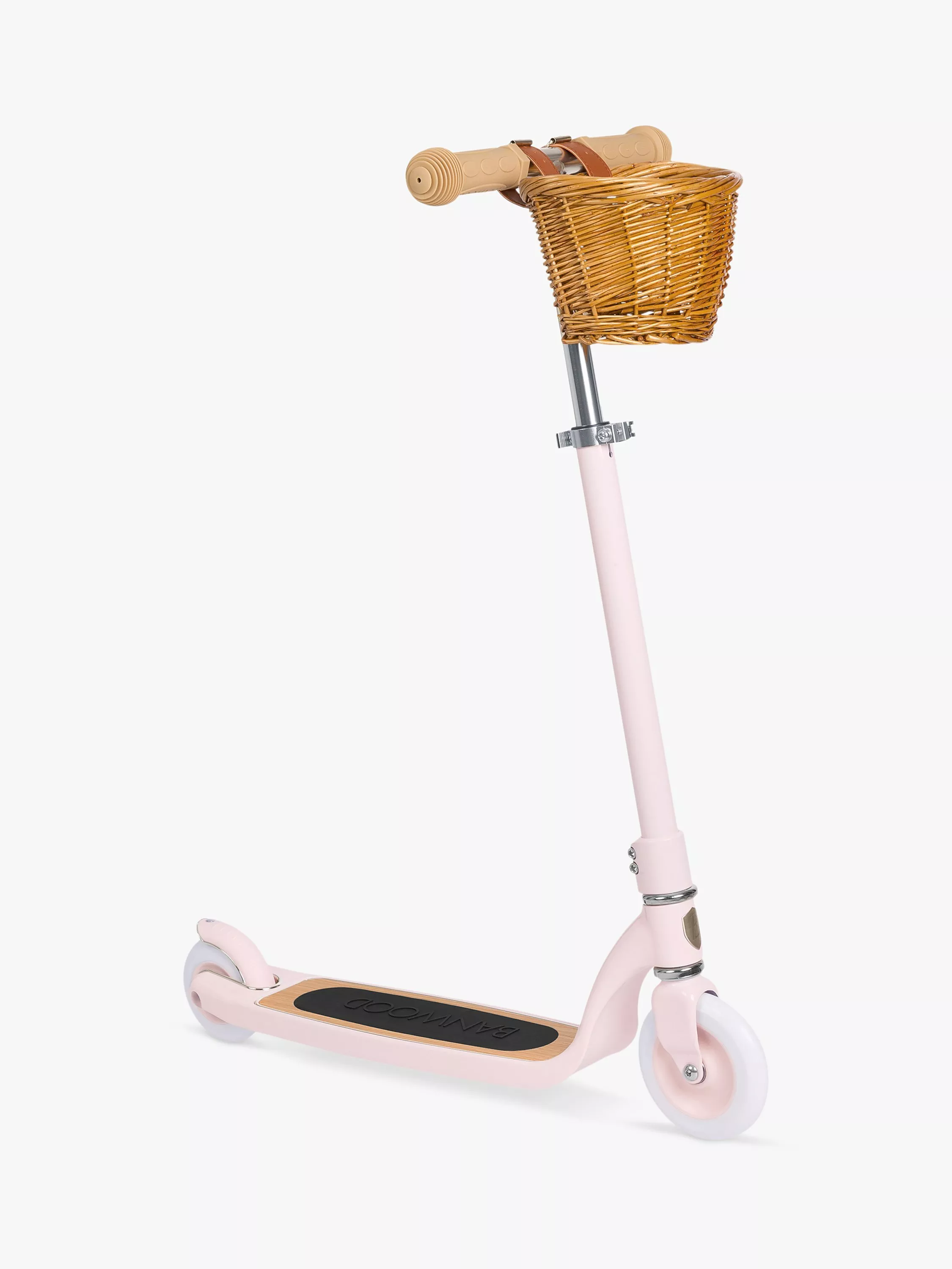 This scooter is built to last the test of time with a lightweight aluminium frame and a wooden oak anti-slip deck for a safe ride. It is equipped with an ergonomic T-handlebar that can easily be adjusted from 74.5-84.5cm. A wicker basket adds a vintage touch. Suitable for ages 6+.