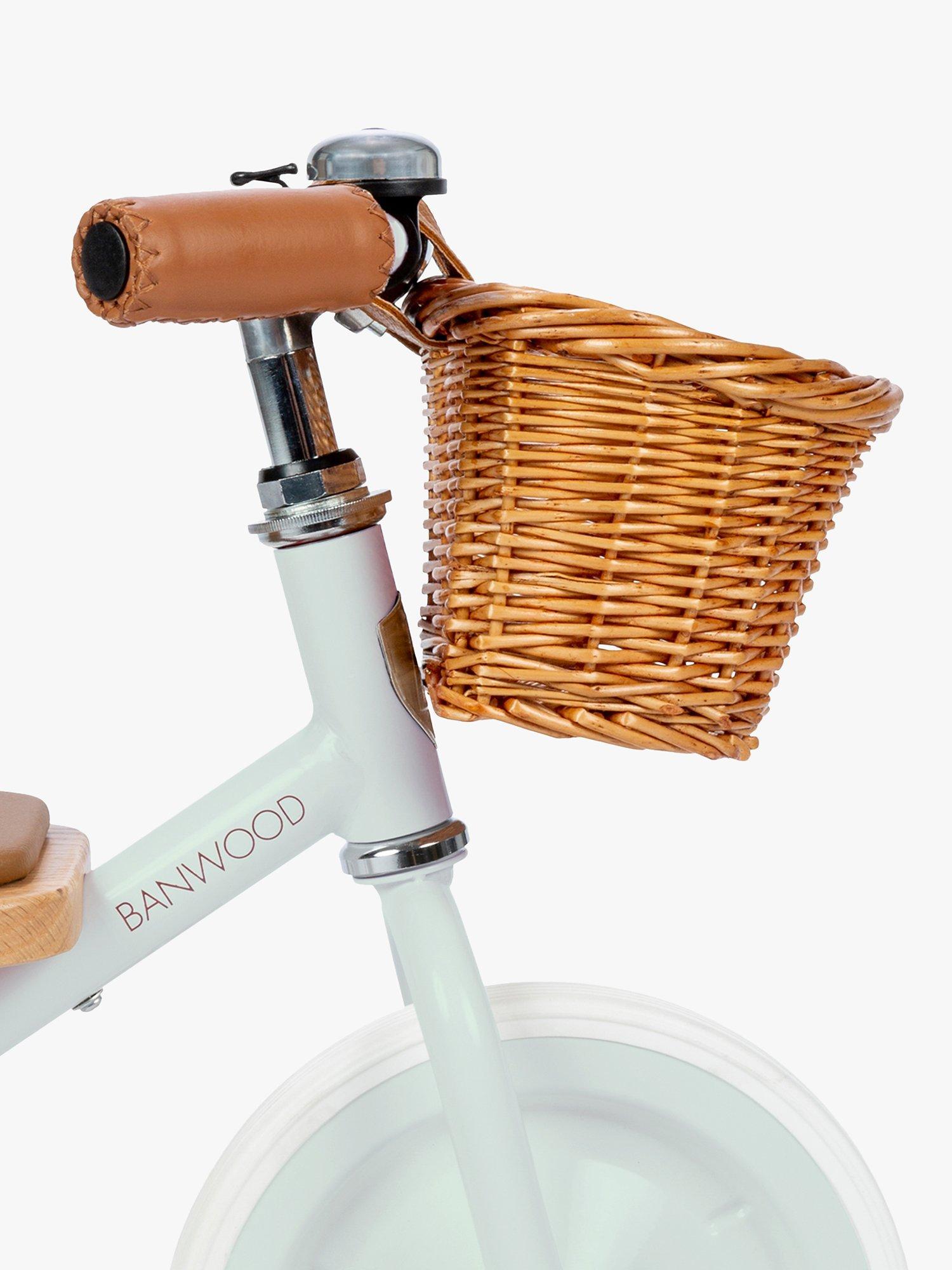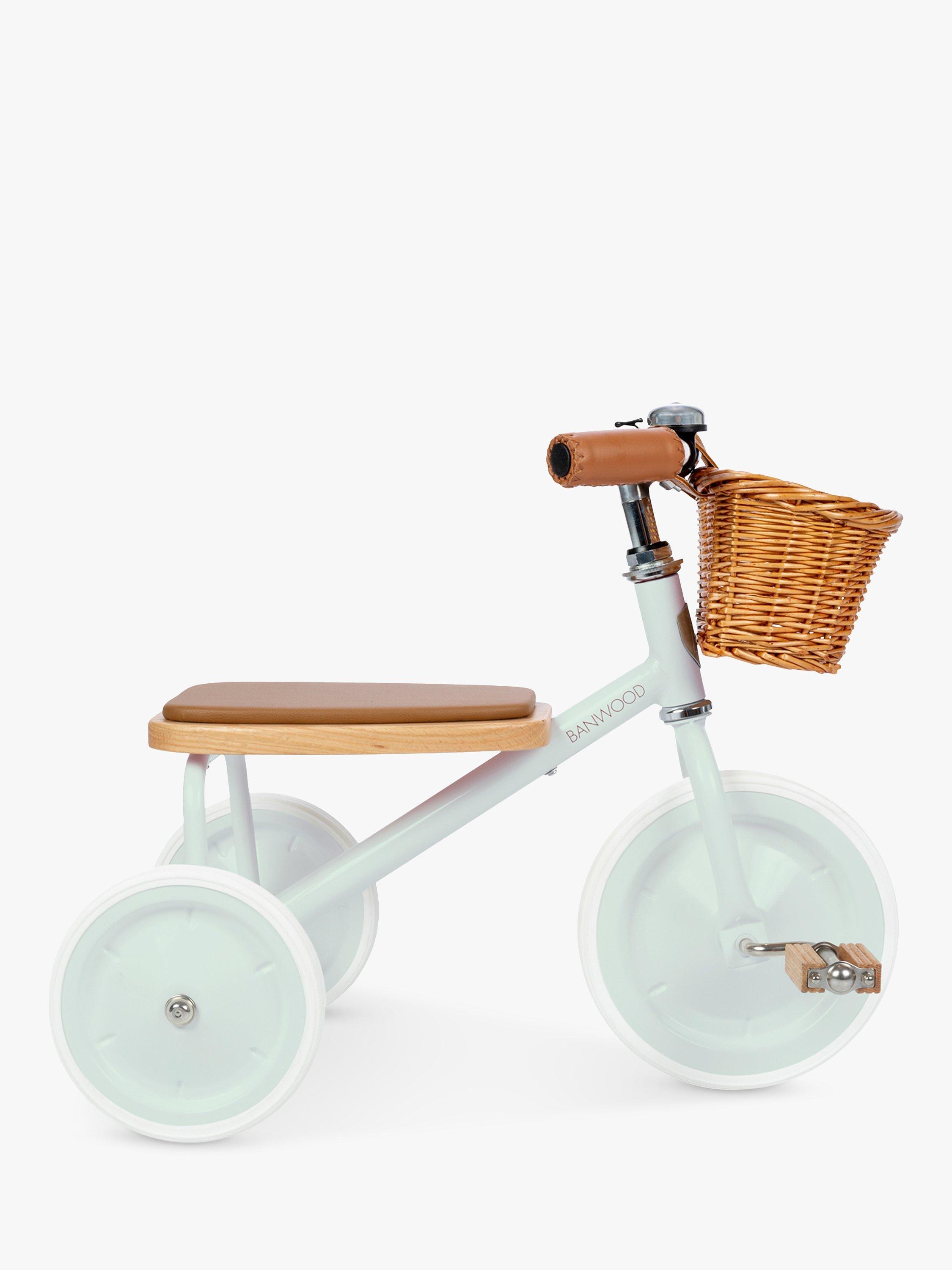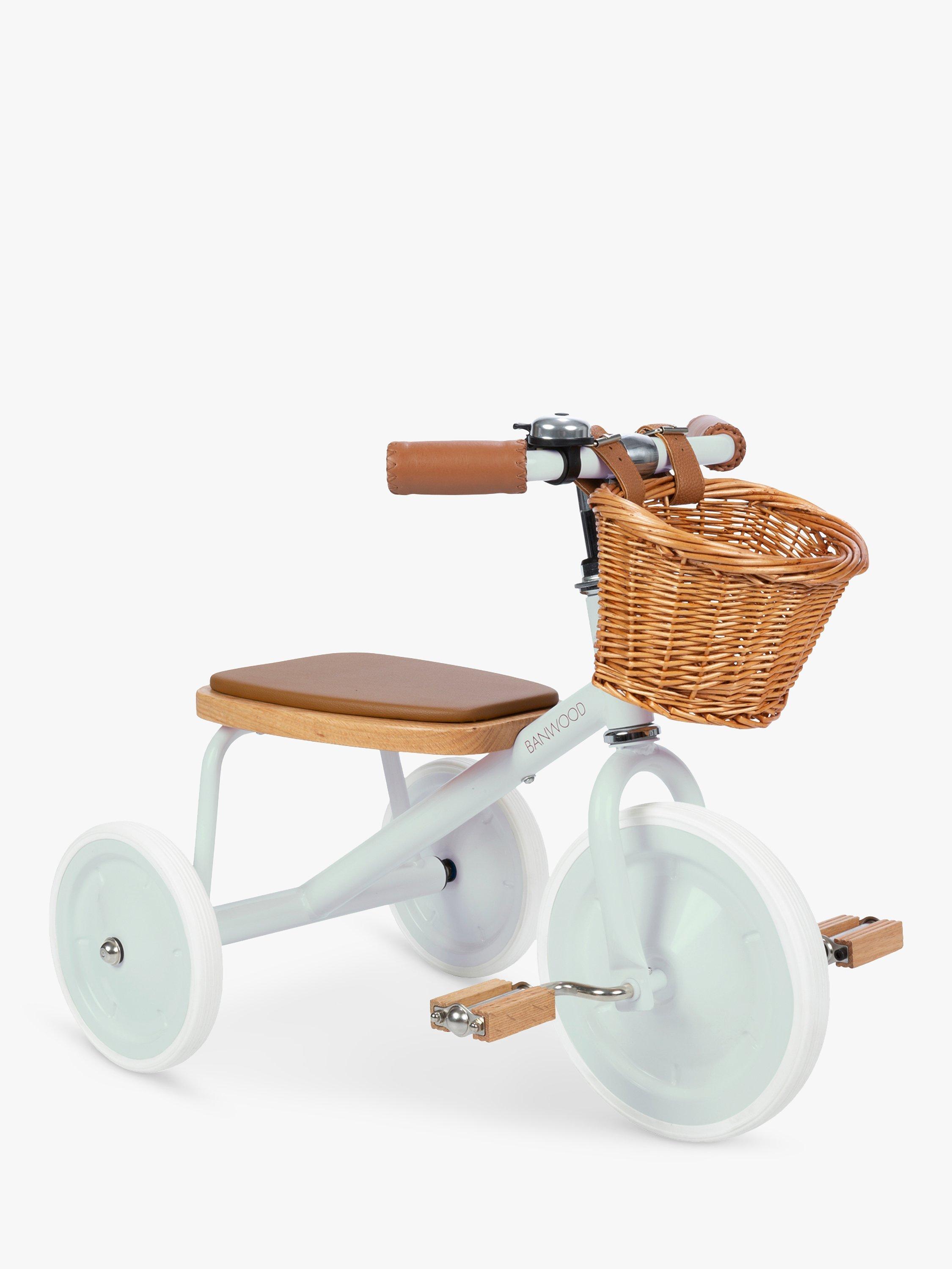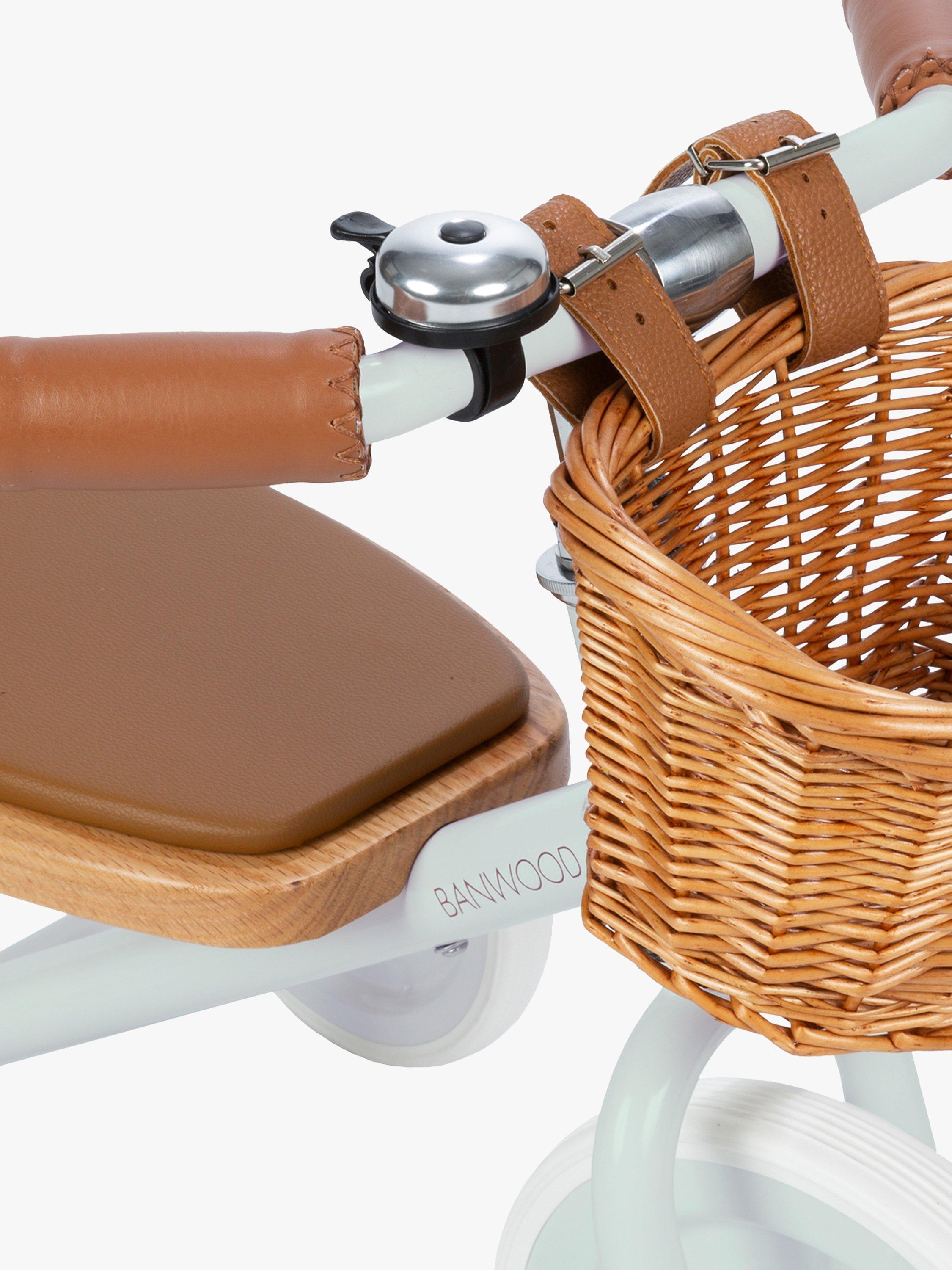 The Trike features a soft padded oak seat, vegan leather details, wooden oak pedals and a cute wicker basket. Suitable from ages 2+.