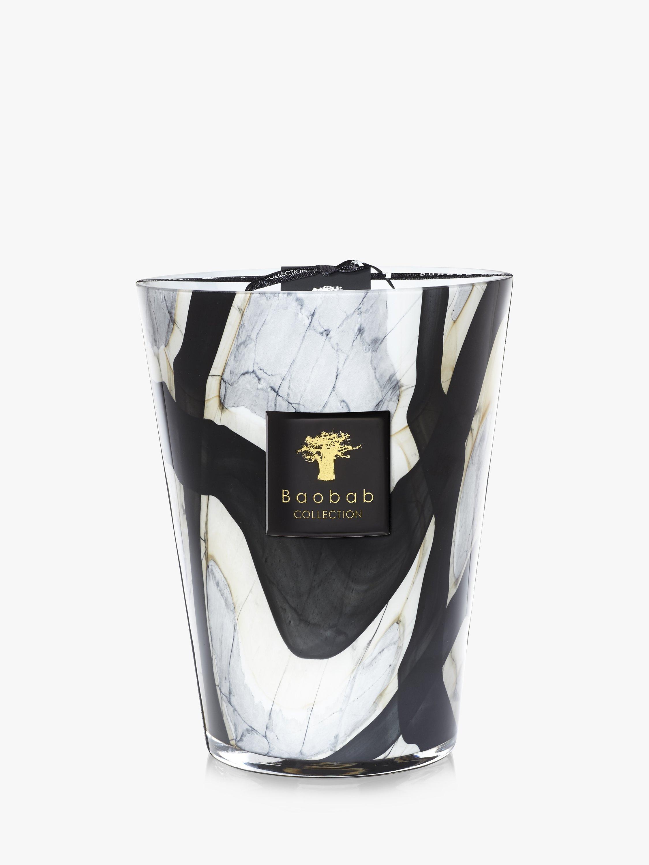 The scented candle is set in a hand blown glass replicating grey marble with black strokes edged with beige. The elegance of the glass reveals the flame, giving an effect of a luminous stone. Its scent is a mysterious blend of leather and tuberose perfectly embodying the dual personality of Marble Stones, both feminine and masculine.