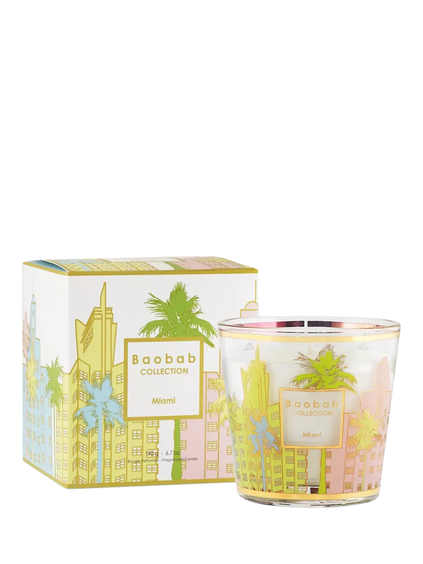 The Miami scented candle is decorated with a pastel and gold screen print inspired by the architecture of the art deco buildings in South Beach. Its fresh fragrance of cypress and cedar will remind you of joggers' colognes in the early morning and will whisk you away to the city's sporty yet arty atmosphere.