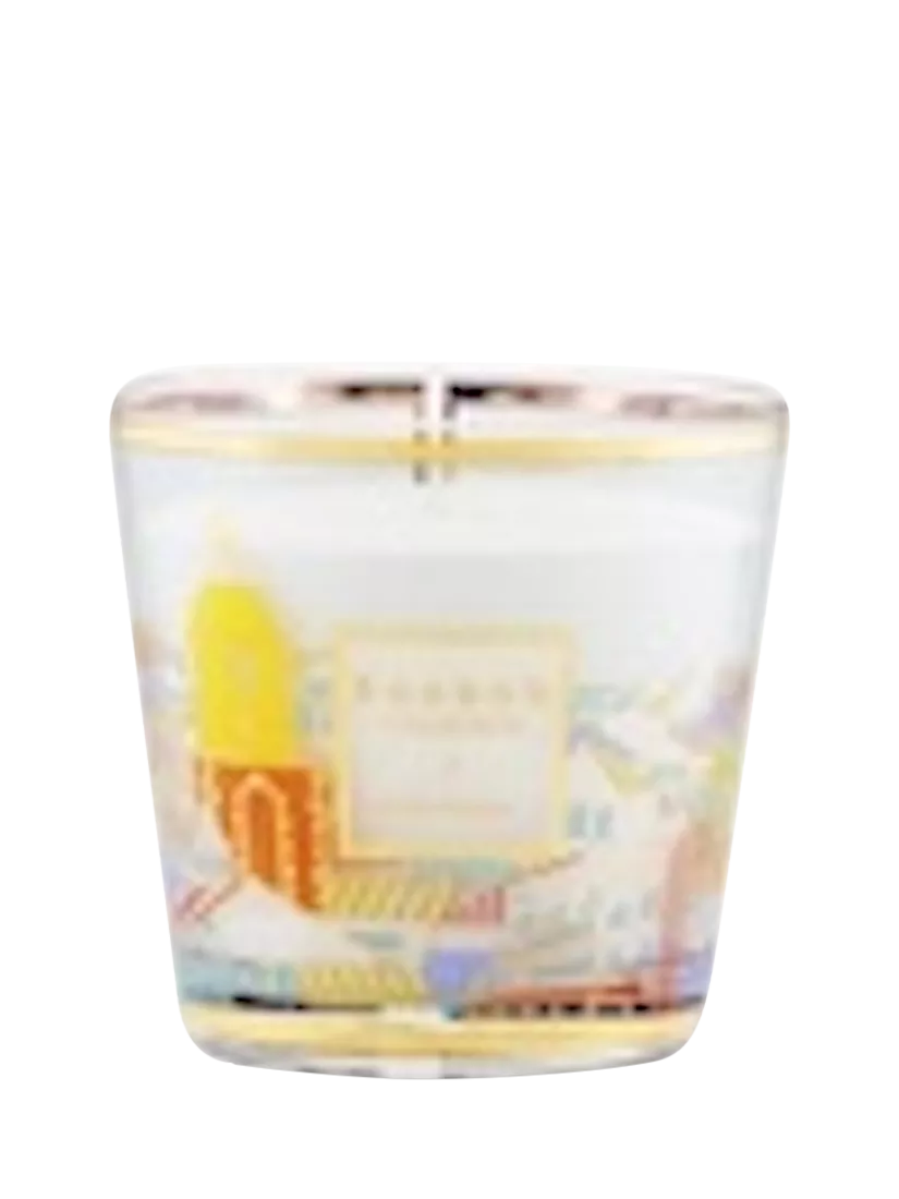 The Saint Tropez scented candle featured in the Baobab Collection is decorated with a multicoloured and gold silk-screen print depicting the roofs of the town's houses and paying tribute to its legendary bell tower. Its gourmet scent of mint and blackcurrant will whisk you away to the village port just in time for ice cream.