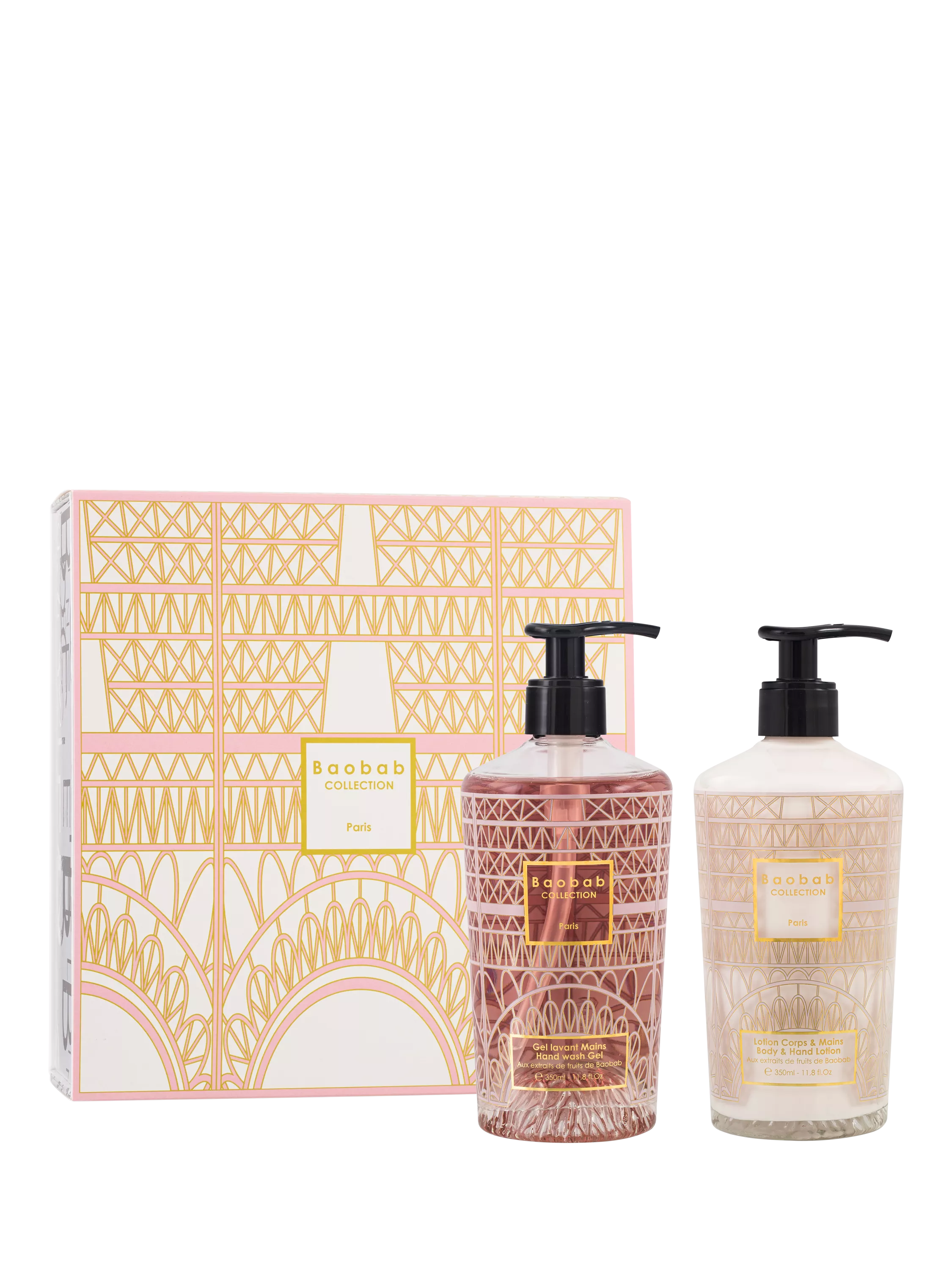 A hand wash and a body lotion are offered together as a gift box, an invitation to take care of yourself.