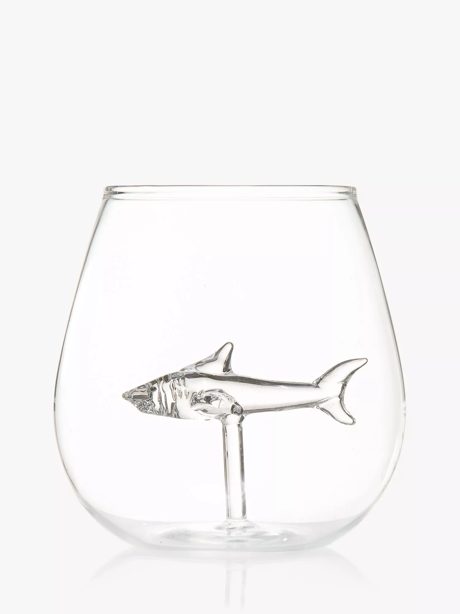 Perfect for parties, this gift-boxed tumbler from Final Touch Bar Bespoke features a handmade glass shark inside. Fill up just so the fin is visible and brave the drink. Made of resilient borosilicate glass, it has a 500ml capacity.