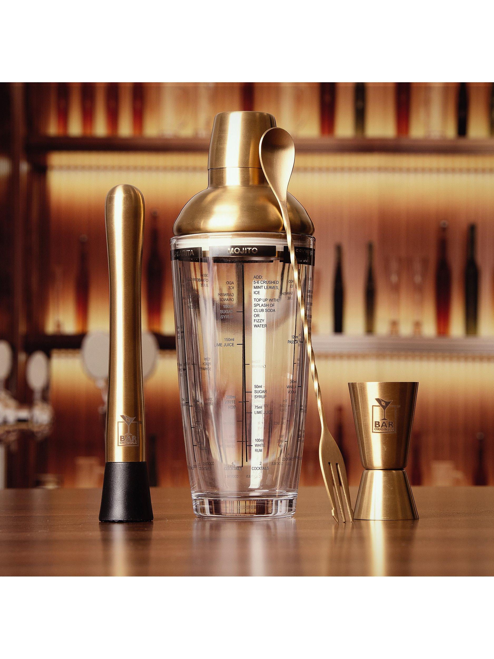 Bar OriginaleStainless Steel Cocktail Recipe Shaker Set, 5 Piece, 600ml, Gold/Clear