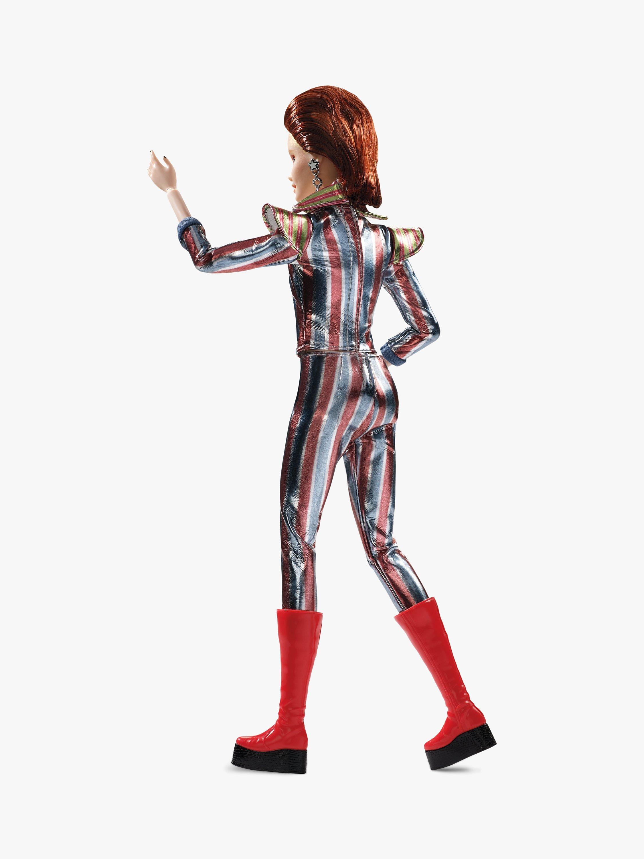 Dressed as Bowie’s fantastic sci-fi alter ego, Ziggy Stardust, in the iconic metallic ‘spacesuit,’ this collectable Barbie doll honours the cultural legacy of the musical genius who redefined rock and roll.