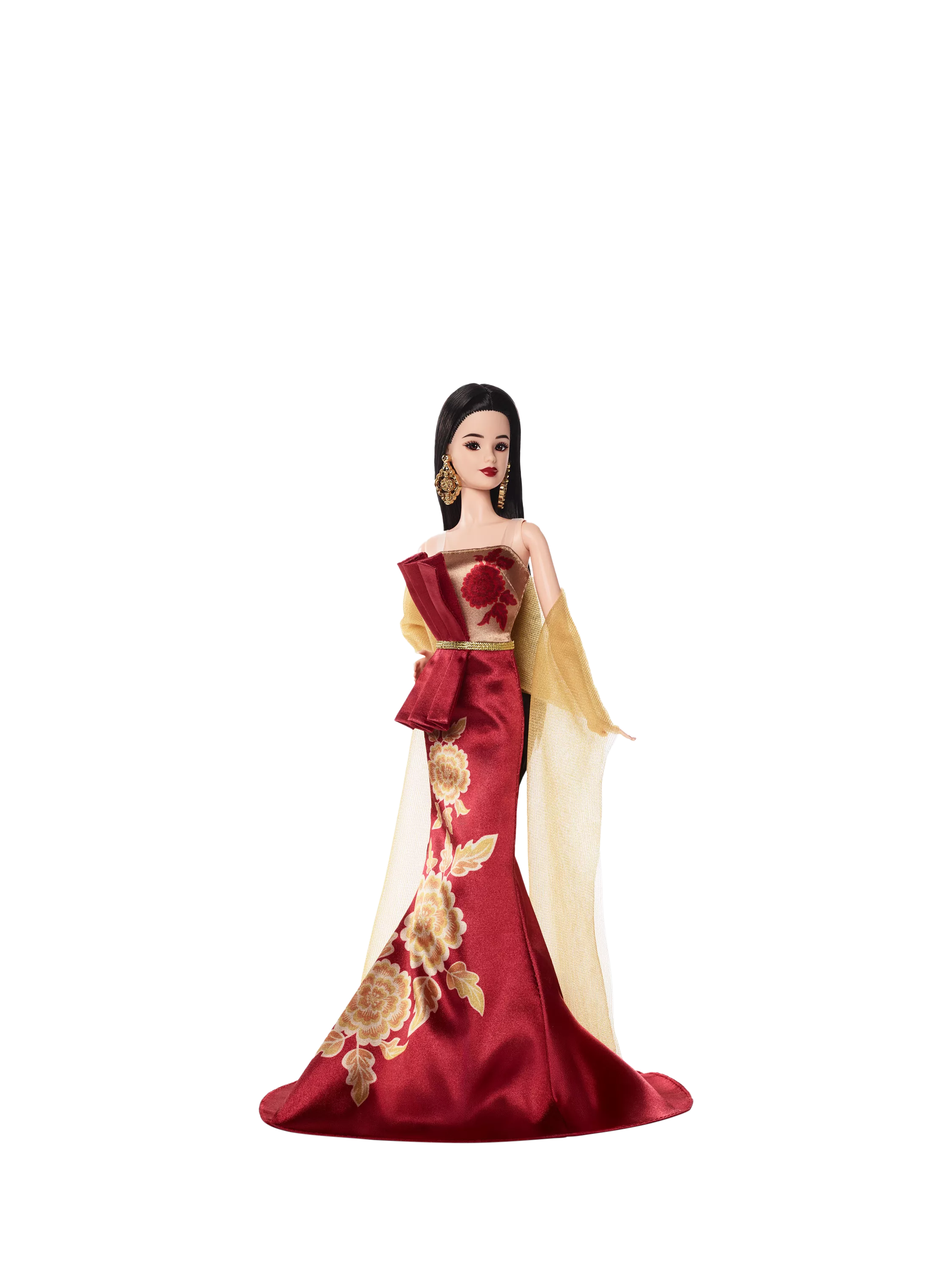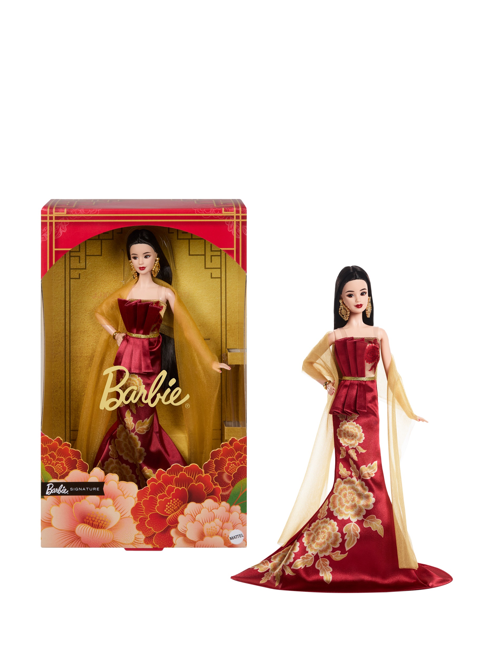 A golden floral print symbolises this optimism with peonies, representing wealth, honour, and elegance. May this Lunar New Year Barbie doll bring prosperity, joy and abundance for many celebrations to come! Includes doll stand and Certificate of Authenticity. Doll cannot stand alone. Colours and decorations may vary.