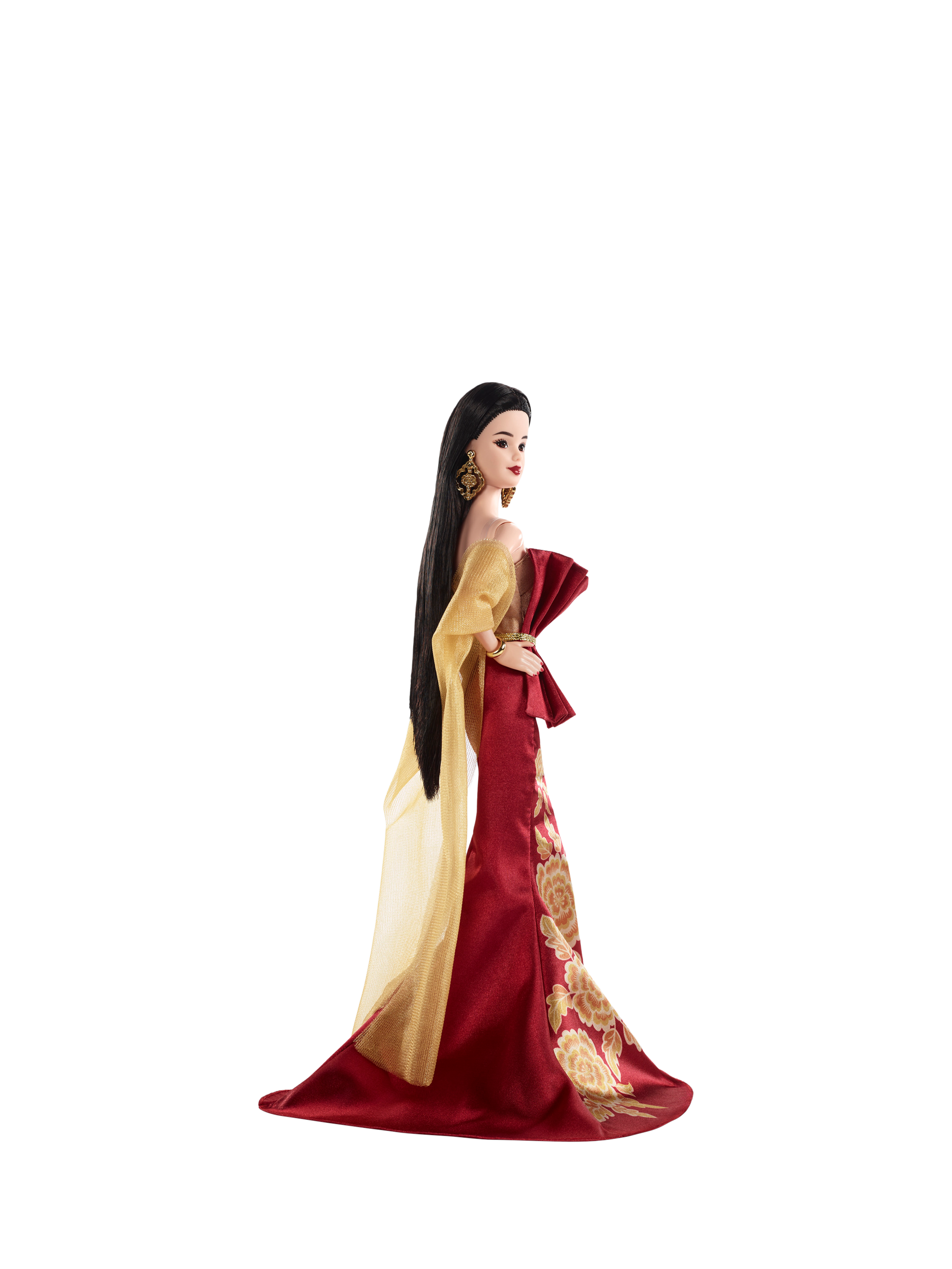 Firecrackers ignite as Barbie steps into the Lunar New Year festival. The sixth doll in the Lunar New Year series, this Barbie doll is resplendent in red to celebrate the fifteen-day holiday that sweeps out the old and ushers in good fortune for the year ahead.