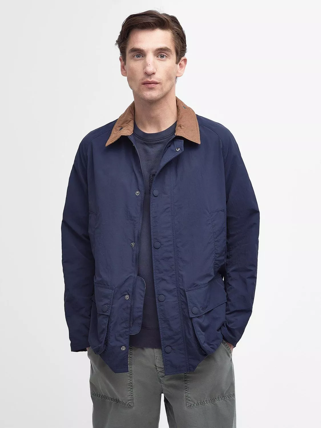 Inspired by Barbour's signature Ashby Waxed Jacket, this new season rendition offers a showerproof finish that's perfect for taking your favourite Barbour style into the warmer months. Featuring Barbour's signature cord collar, zip and press-stud fastening, hand warmer pockets and lower bellow pockets, it's perfect for everyday wear.