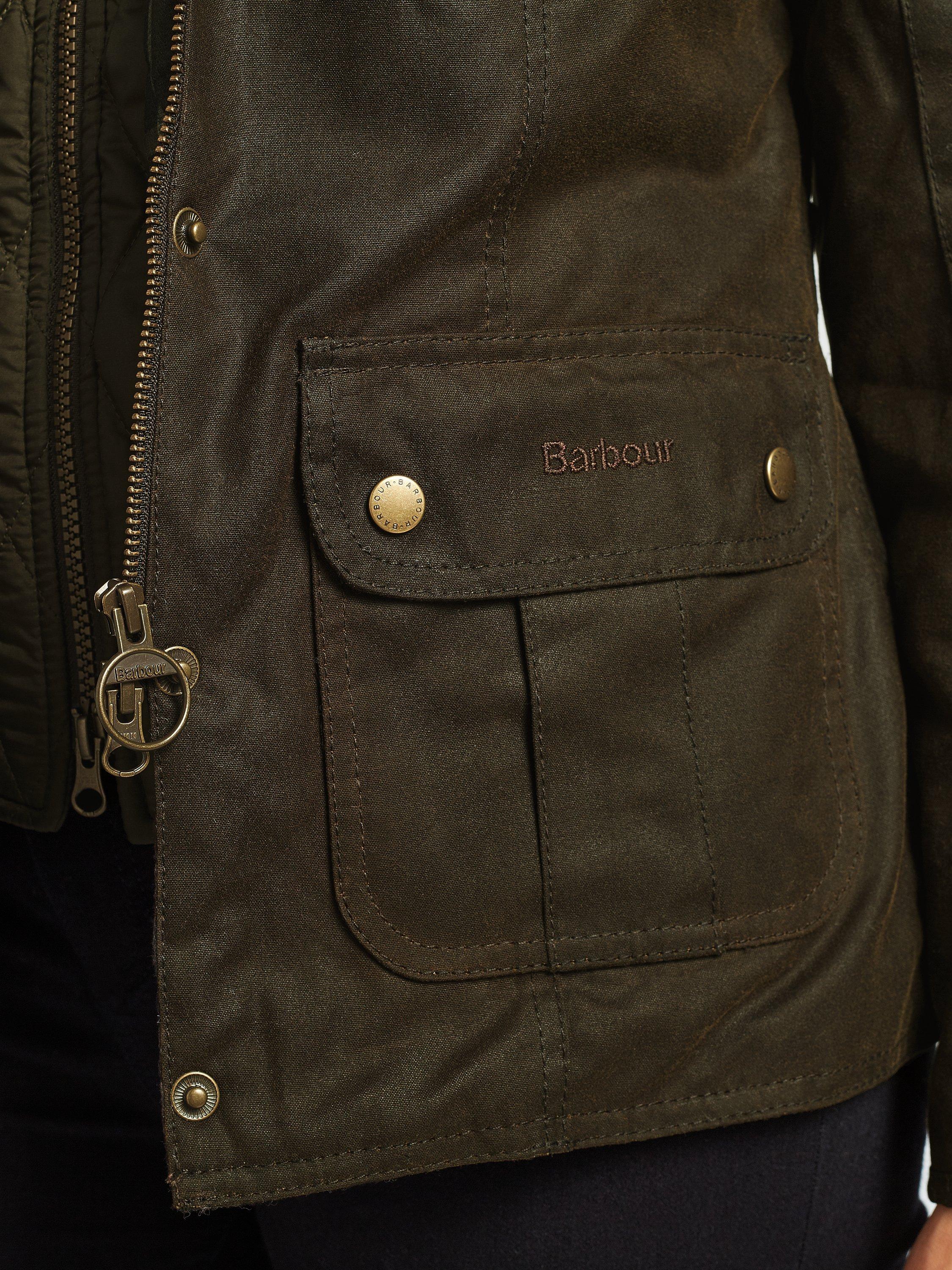 Showcase your utility style with this ageless Ashley waxed jacket from Barbour.
