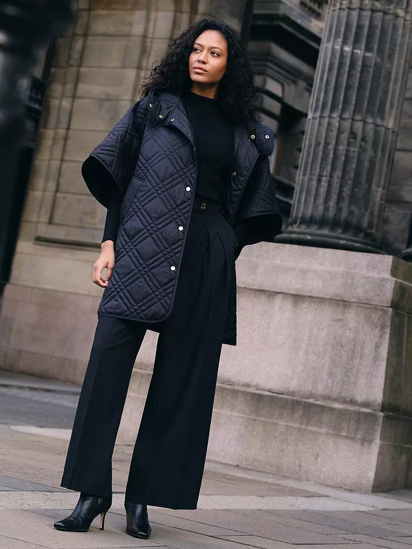 Inspired by Barbour's classic tartan, this season a new quilting design has been added to the range. The Barbour Astor quilted cape features our new tartan quilt and is detailed with a studded fastening and open sides making it perfect for chunky winter layering.
