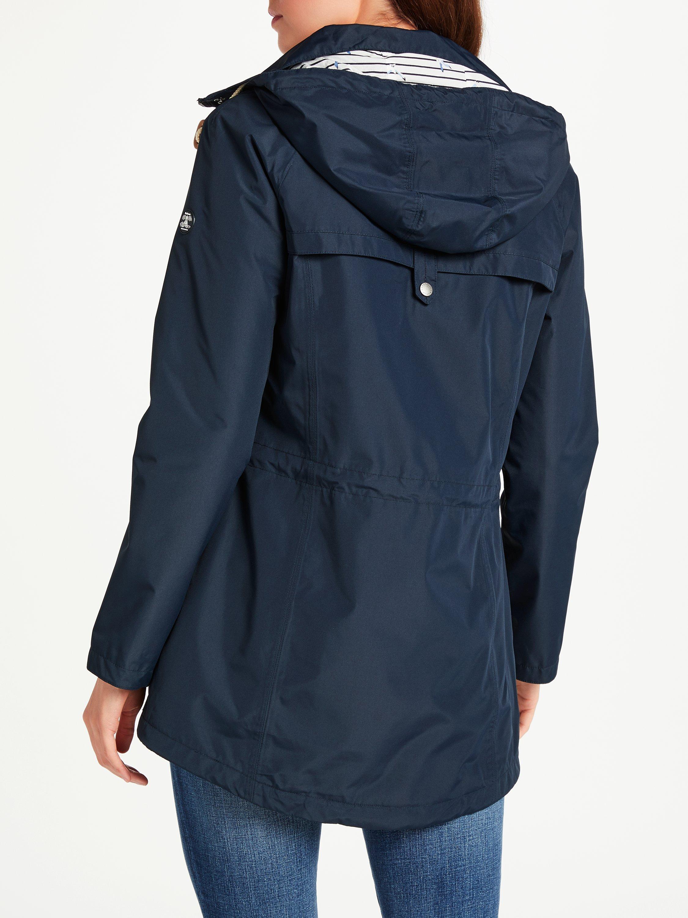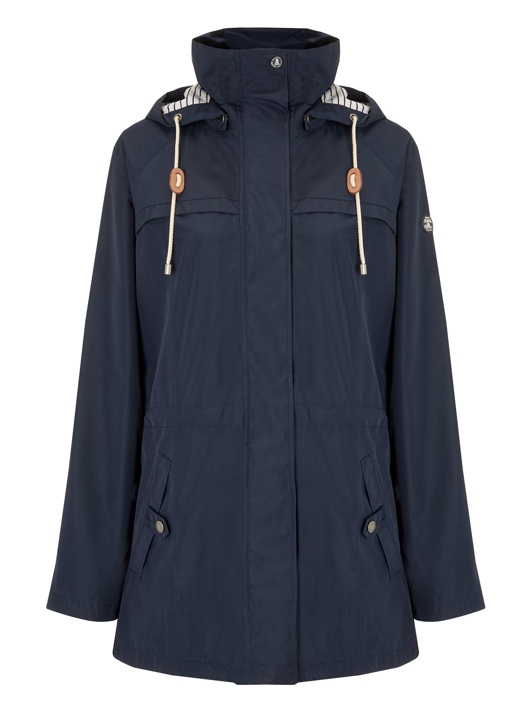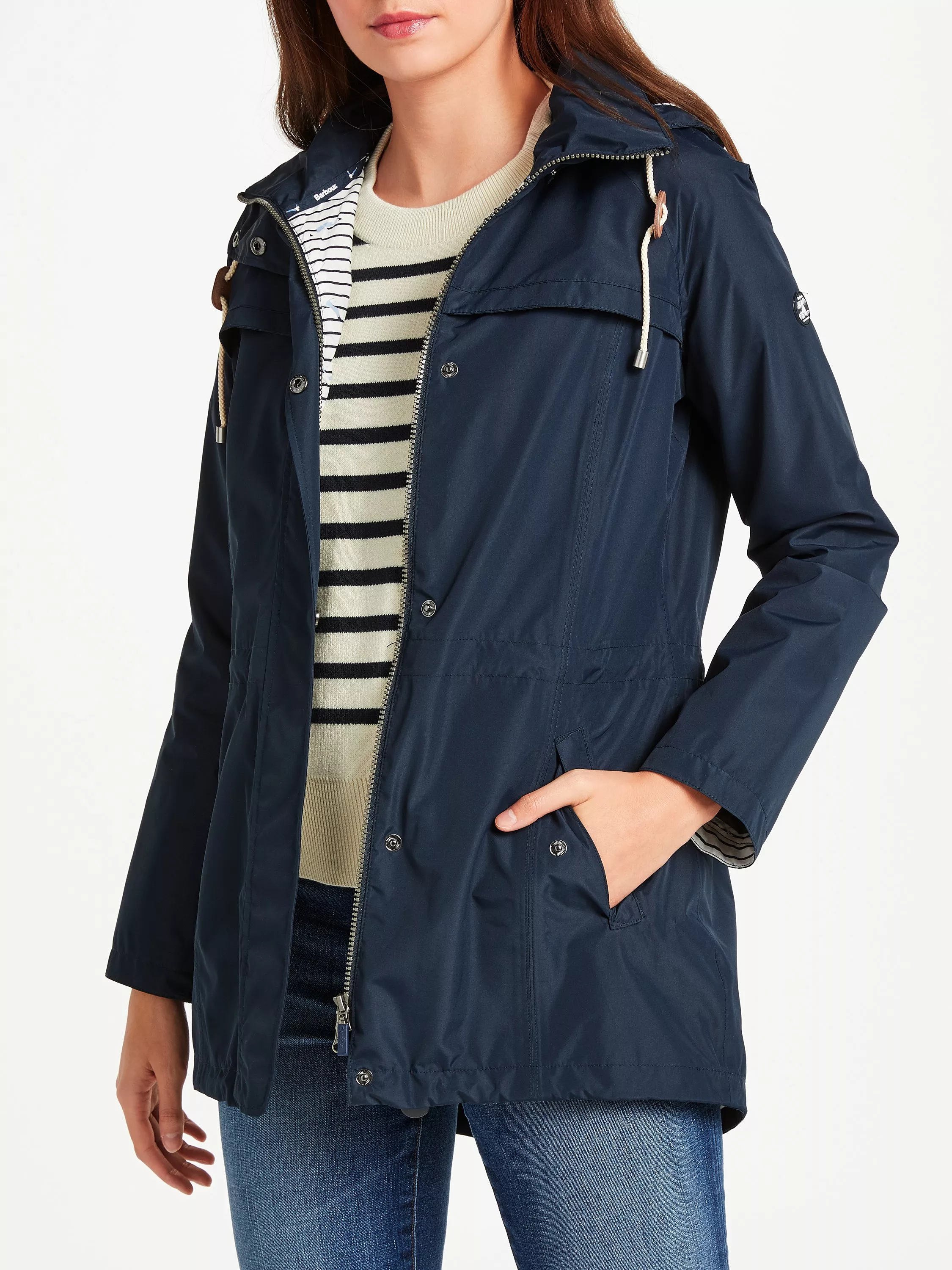 Carefully made from a waterproof fabric, this go-to piece features two slanted pockets with press stud flaps, a concealed zip fastening with a press stud storm flap, a generous hood with drawcords and striped cotton lining.