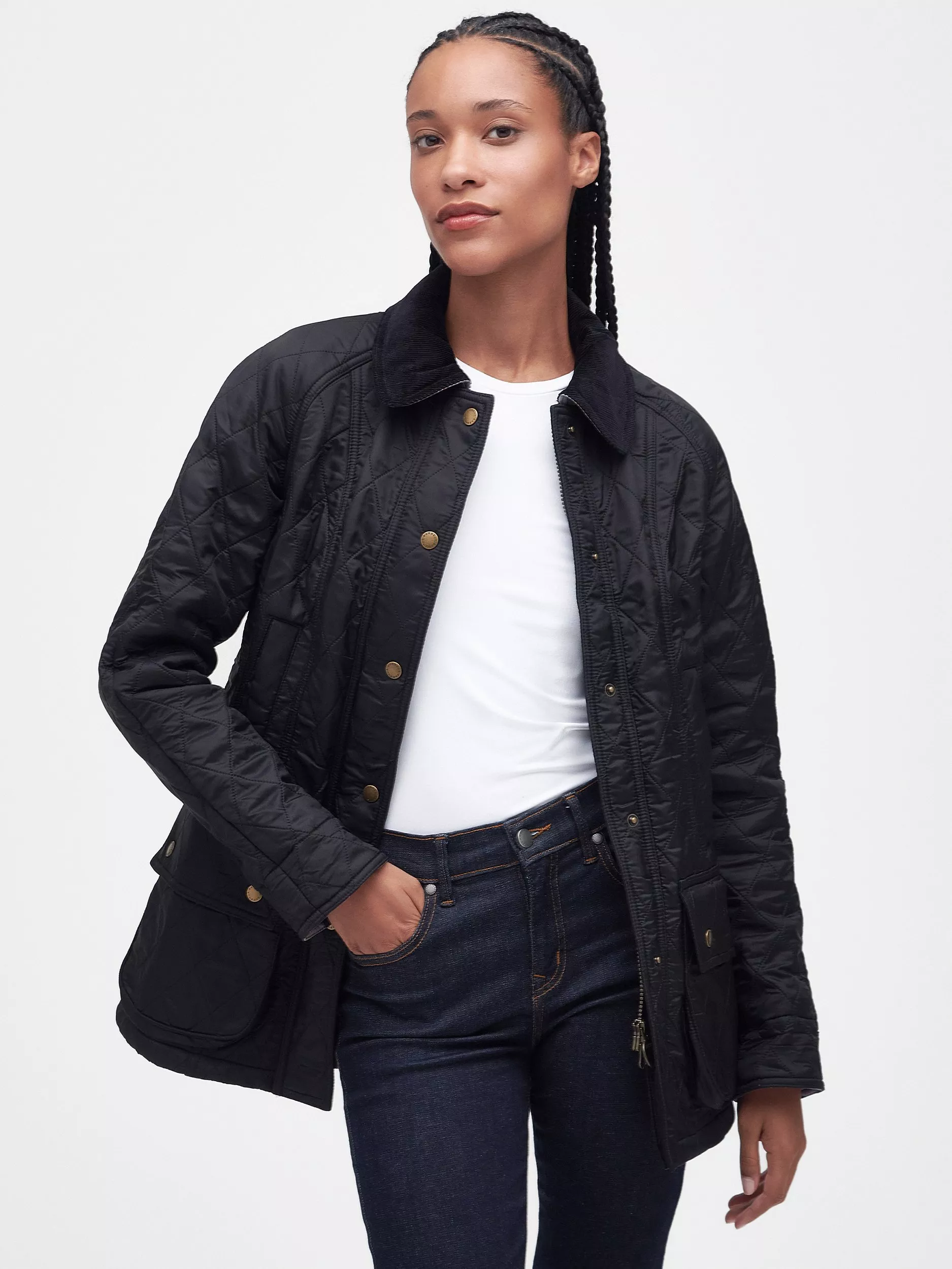 With styling based on the iconic Barbour Beadnell, this luxuriously warm jacket is constructed with a diamond-quilted outer and a super-soft fleece lining. Handwarmer pockets add extra winter practicality, while a contrast cord collar completes the signature look.