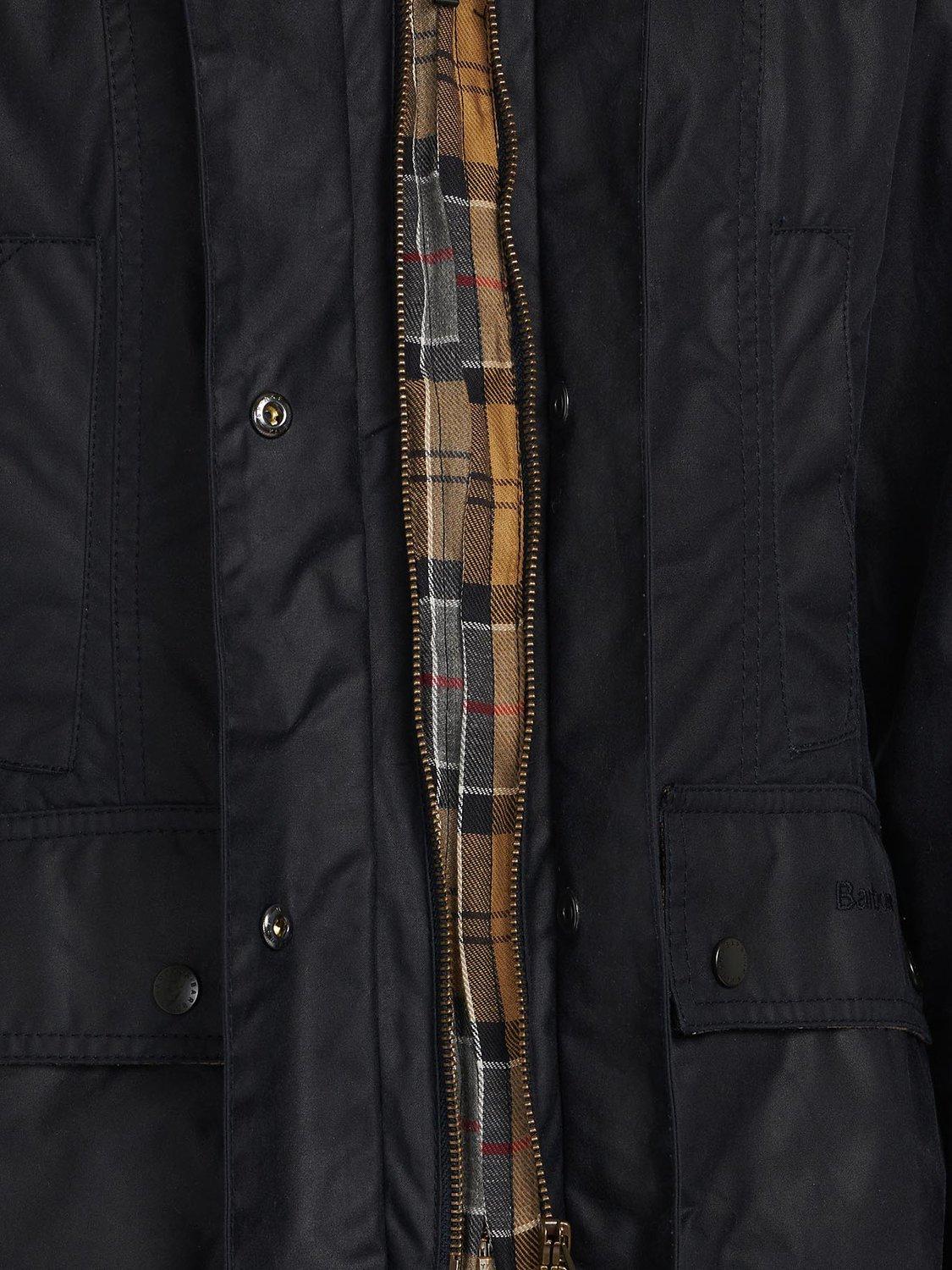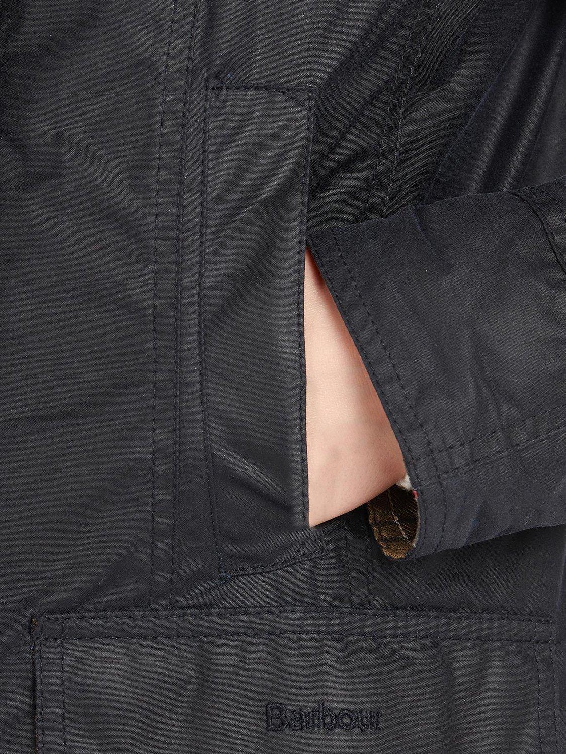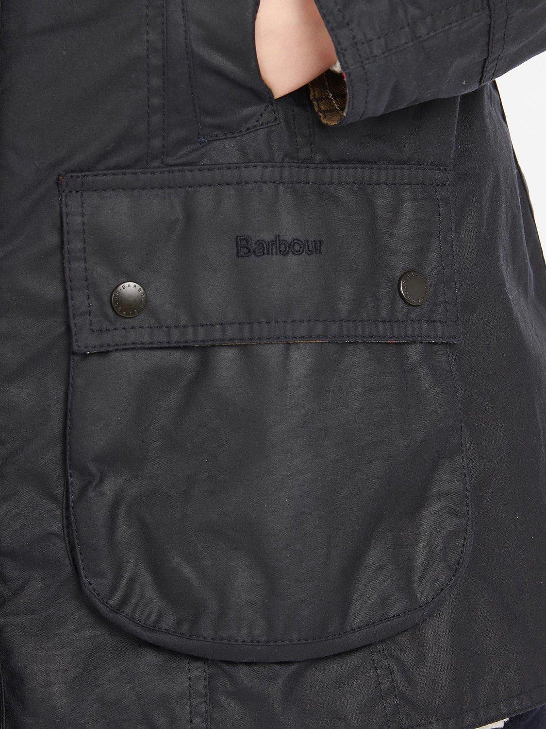 Stylish and practical, with a studded throat strap, two handwarmer pockets, two studded pockets and stitched Barbour branding for the most authentic country-to-town layer.