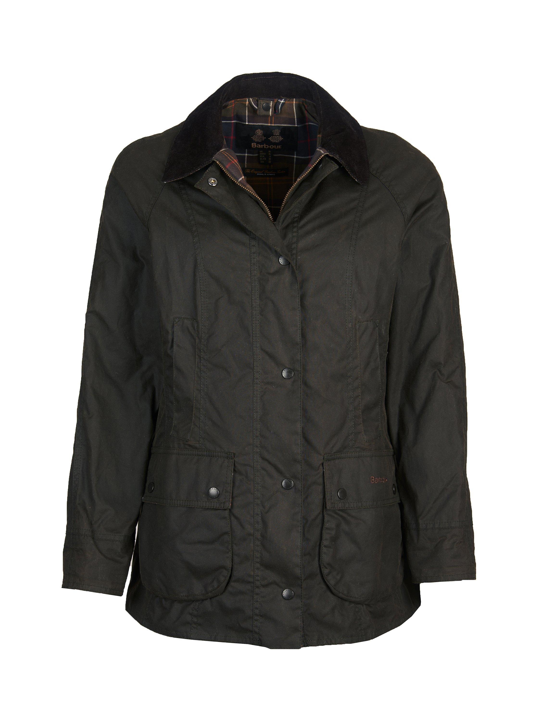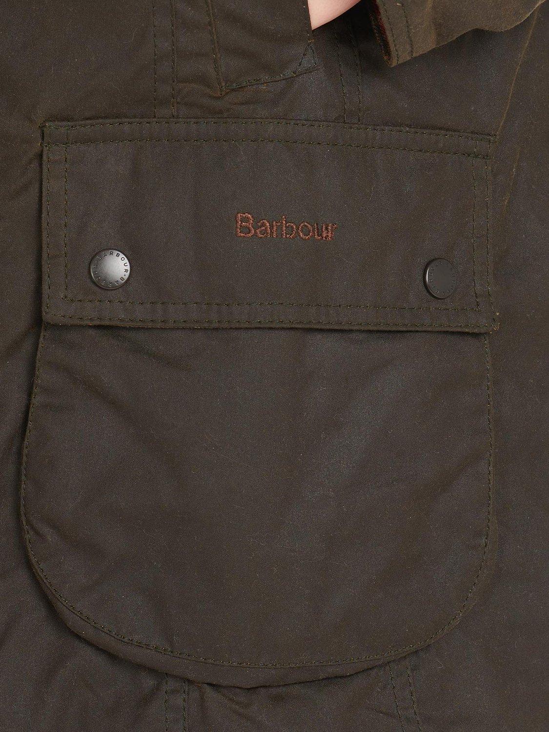 Stylish and practical, with a studded throat strap, two handwarmer pockets, two studded pockets and stitched Barbour branding for the most authentic country-to-town layer.