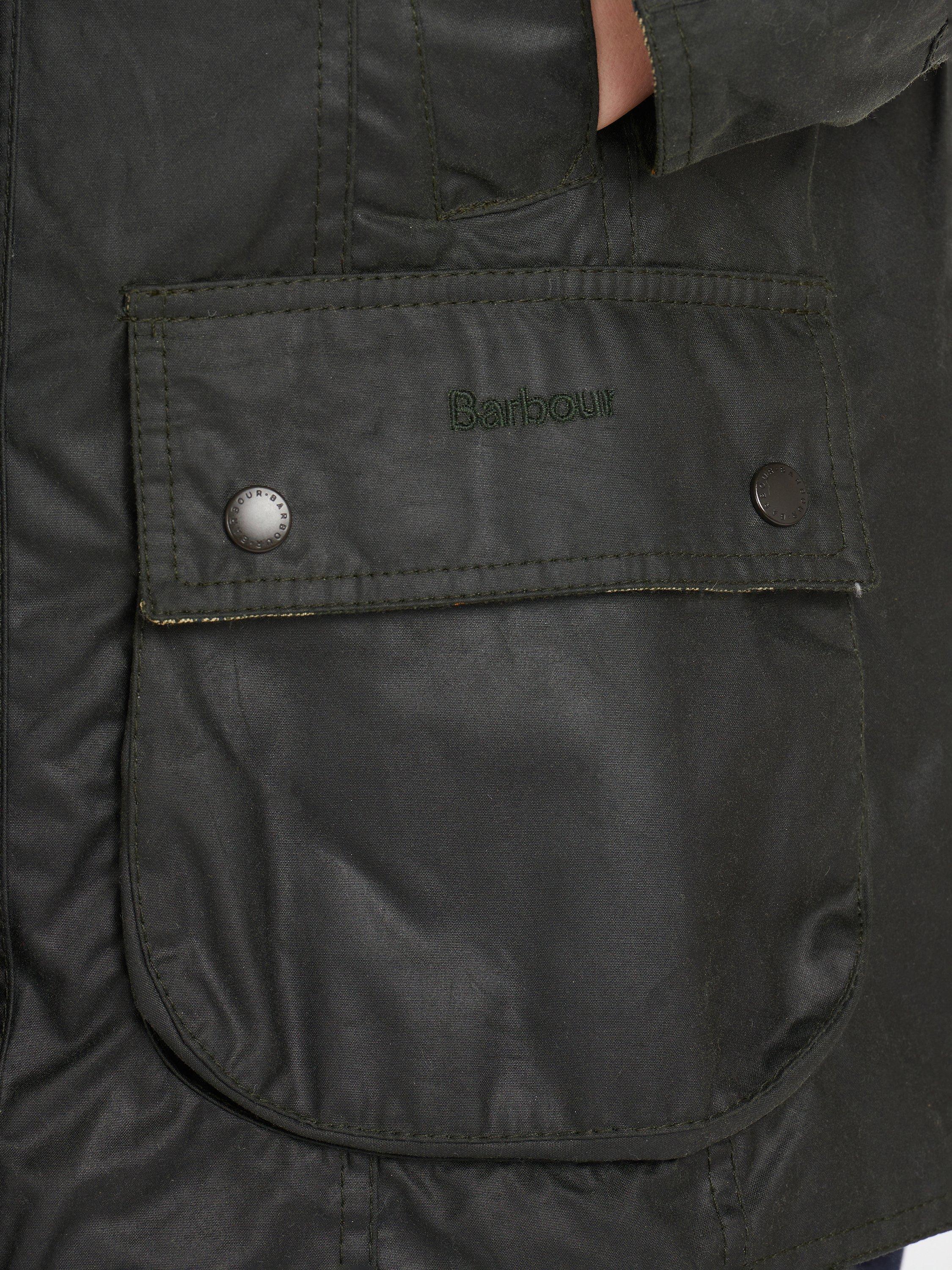 Stylish and practical, with a studded throat strap, two handwarmer pockets, two studded pockets and stitched Barbour branding for the most authentic country-to-town layer.