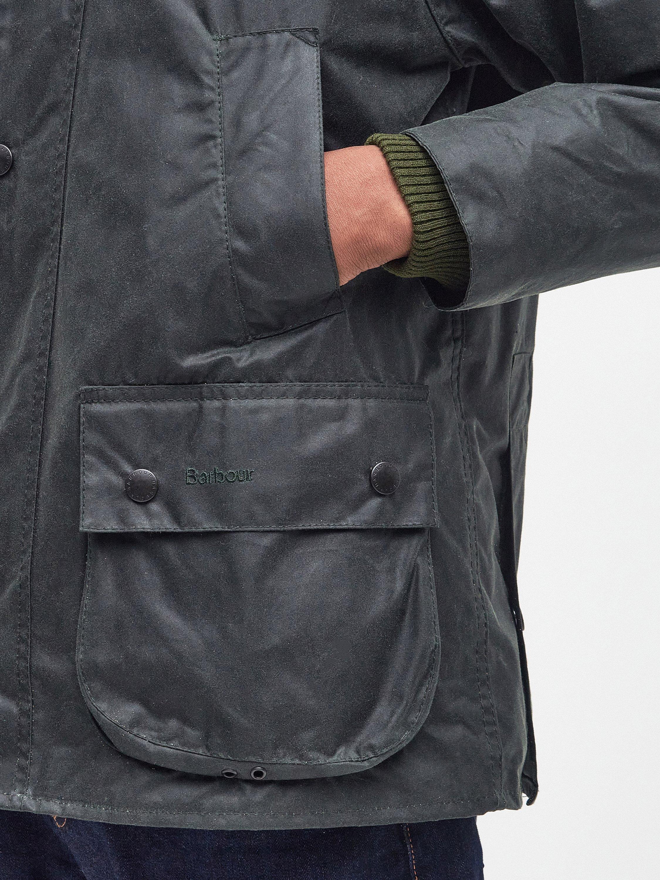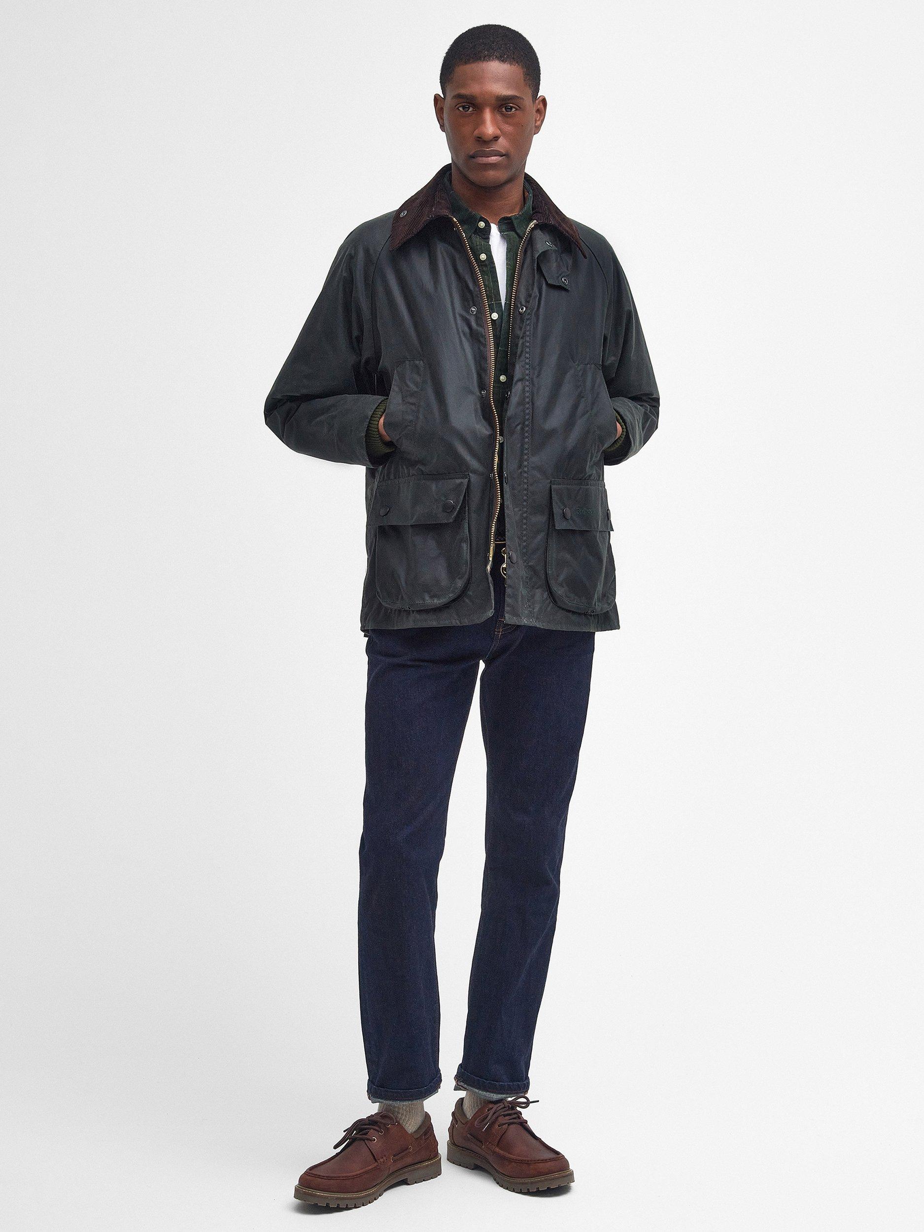 Designed in 1980, the Bedale Jacket stems from Barbour's love for horse riding, showcasing a short and lightweight jacket that offers versatility as well as functionality. Dame Margaret Barbour designed the Bedale with equestrian practicalities in mind showcasing a shorter length, relaxed fit, rear vents and the essential Nylon inner 'drip-strip' that provided resistance to damp from horses seeping into the jacket. Made with mediumweight 6oz waxed cotton and fully interactive with optional zip-in thermal liners and hoods, the Bedale is a brilliant all-year-round jacket that can be worn for a multitude of different occasions. The classic elements of a Barbour jacket are all included, with a brass two-way ring-pull zip and studded 'Stormfly' front, two large bellows pockets and two moleskin-lined handwarmer pockets, and the traditional corduroy collar with studs for a hidden throat flap. Now a classic, the practicality and simple style of the Bedale remains popular with all ages. The popularity of the Bedale has inspired a slimmed down version for women the Beadnell, which is named after a small fishing village in Northumberland.